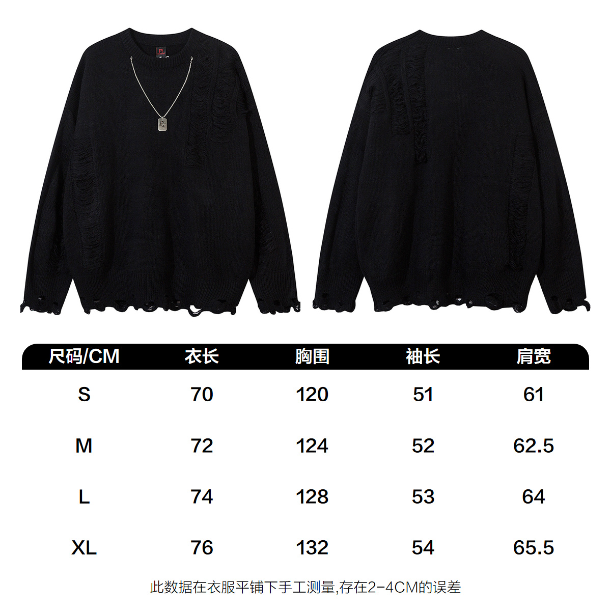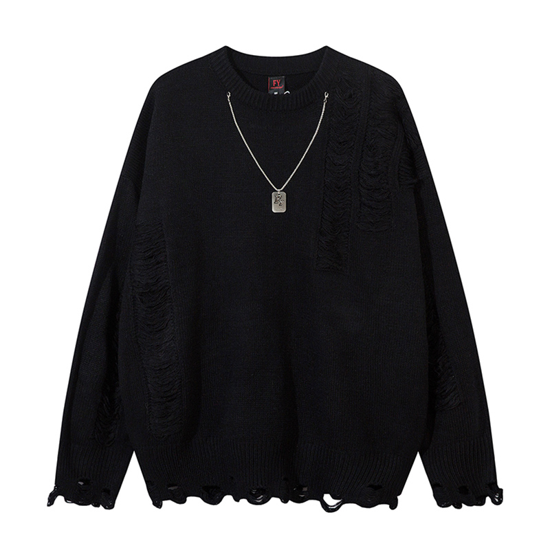 NOONOZ欧美高街个性破洞毛衣男2024秋冬潮牌美式项链嘻哈针织衫