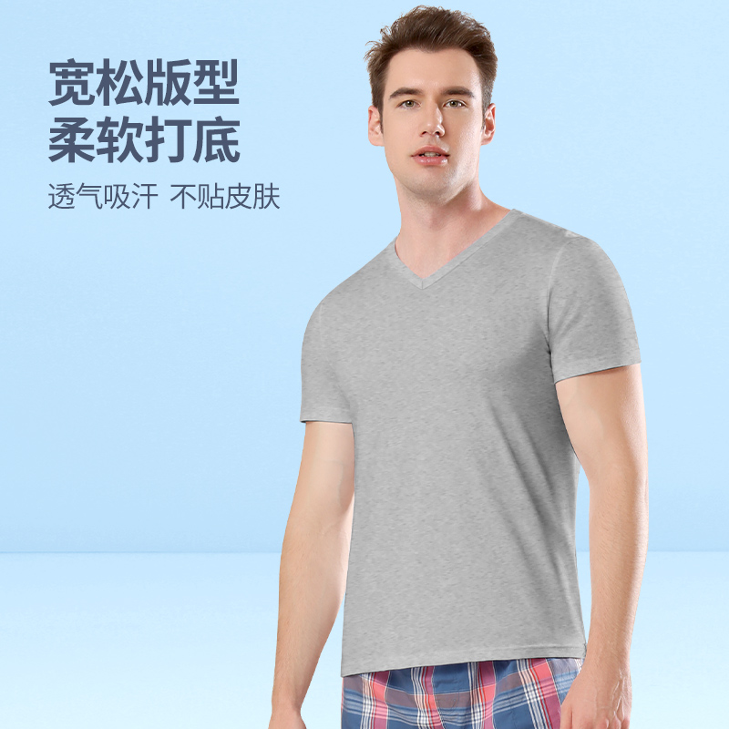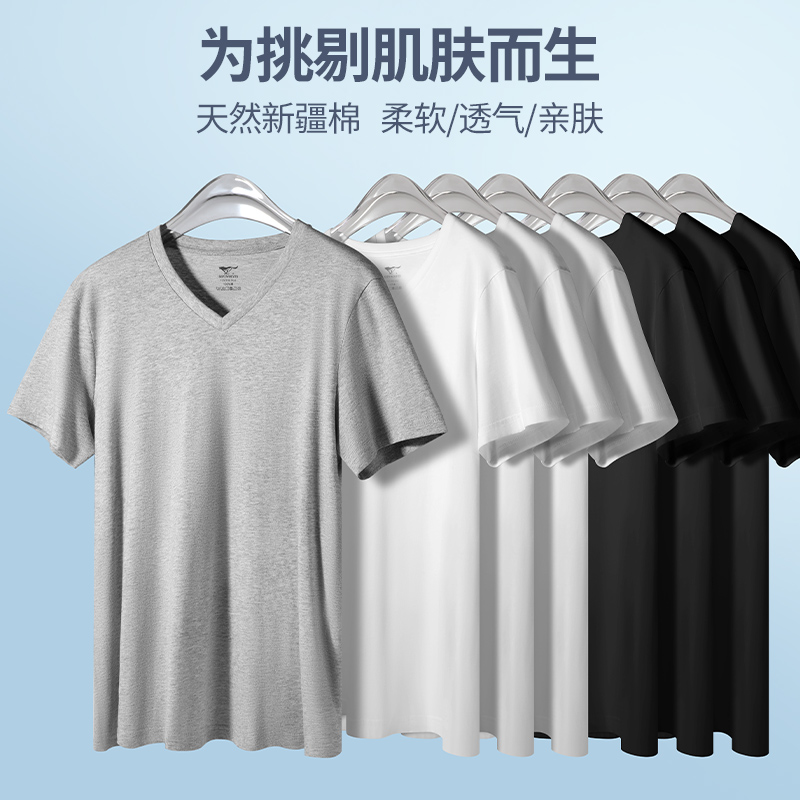 七匹狼男士短袖t恤男生纯棉v领体恤全棉老头汗衫半袖背心内衣冬季
