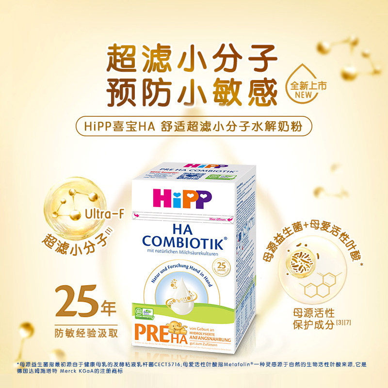 HiPP德国喜宝HA水解奶粉低敏新生婴幼儿进口正品牛奶粉pre段