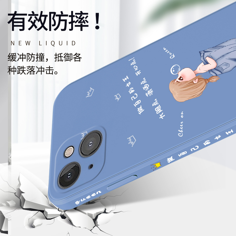 适用于苹果13手机壳直边液态硅胶iPhone13Pro保护套女新款超薄防摔13promax软壳全包镜头潮牌网红个性创意ins
