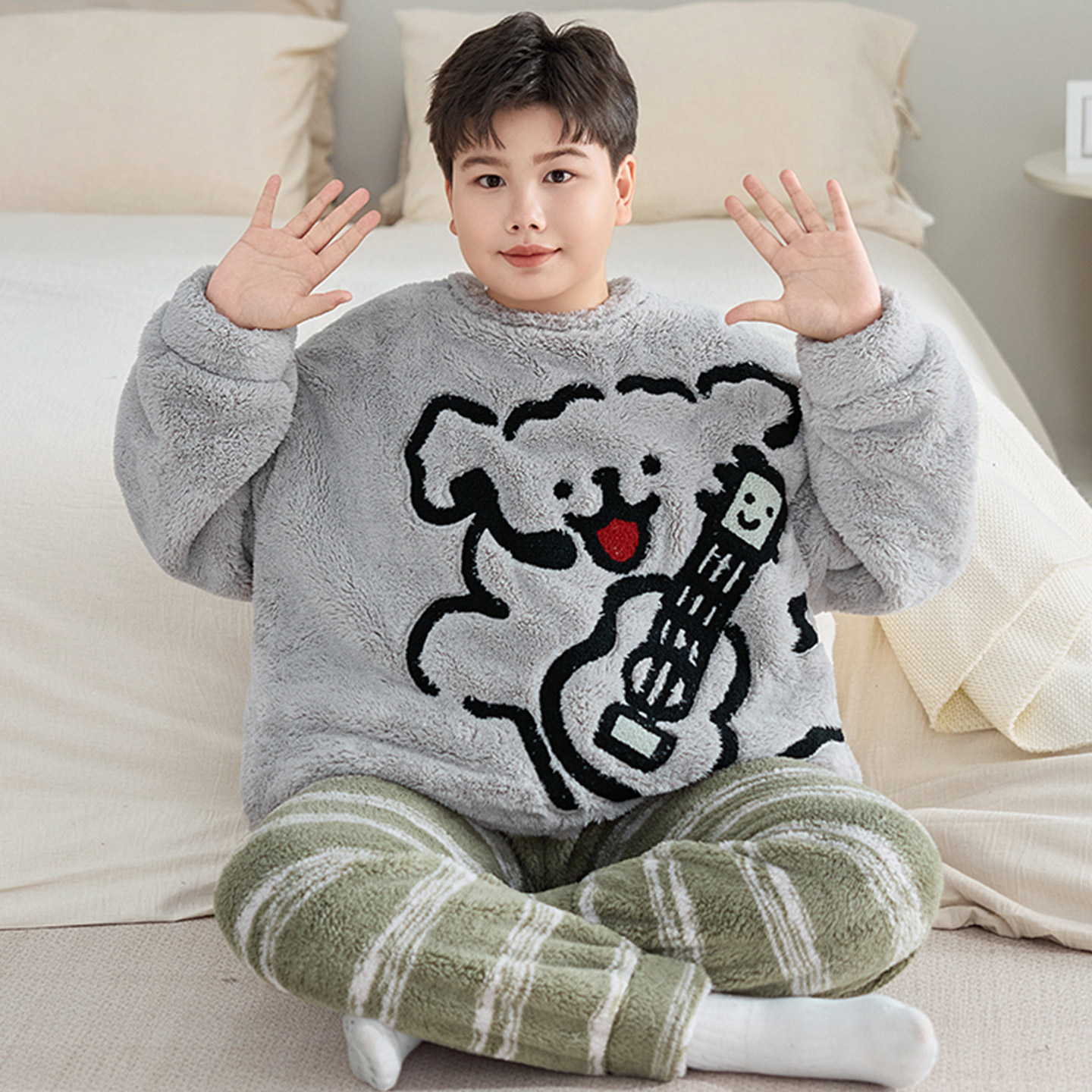 胖男孩睡衣冬款大童珊瑚绒家居服