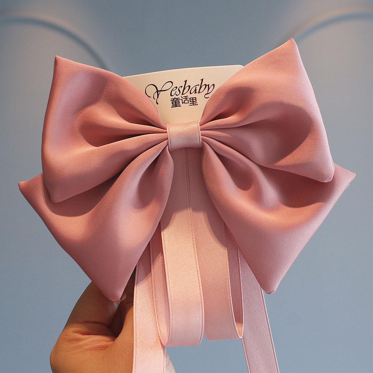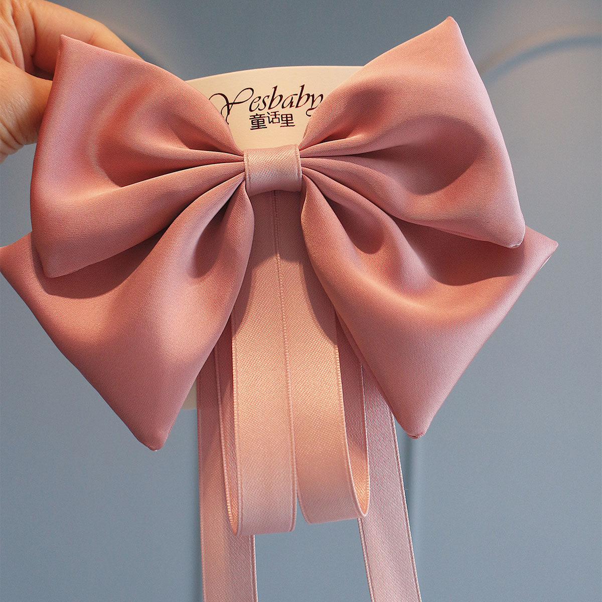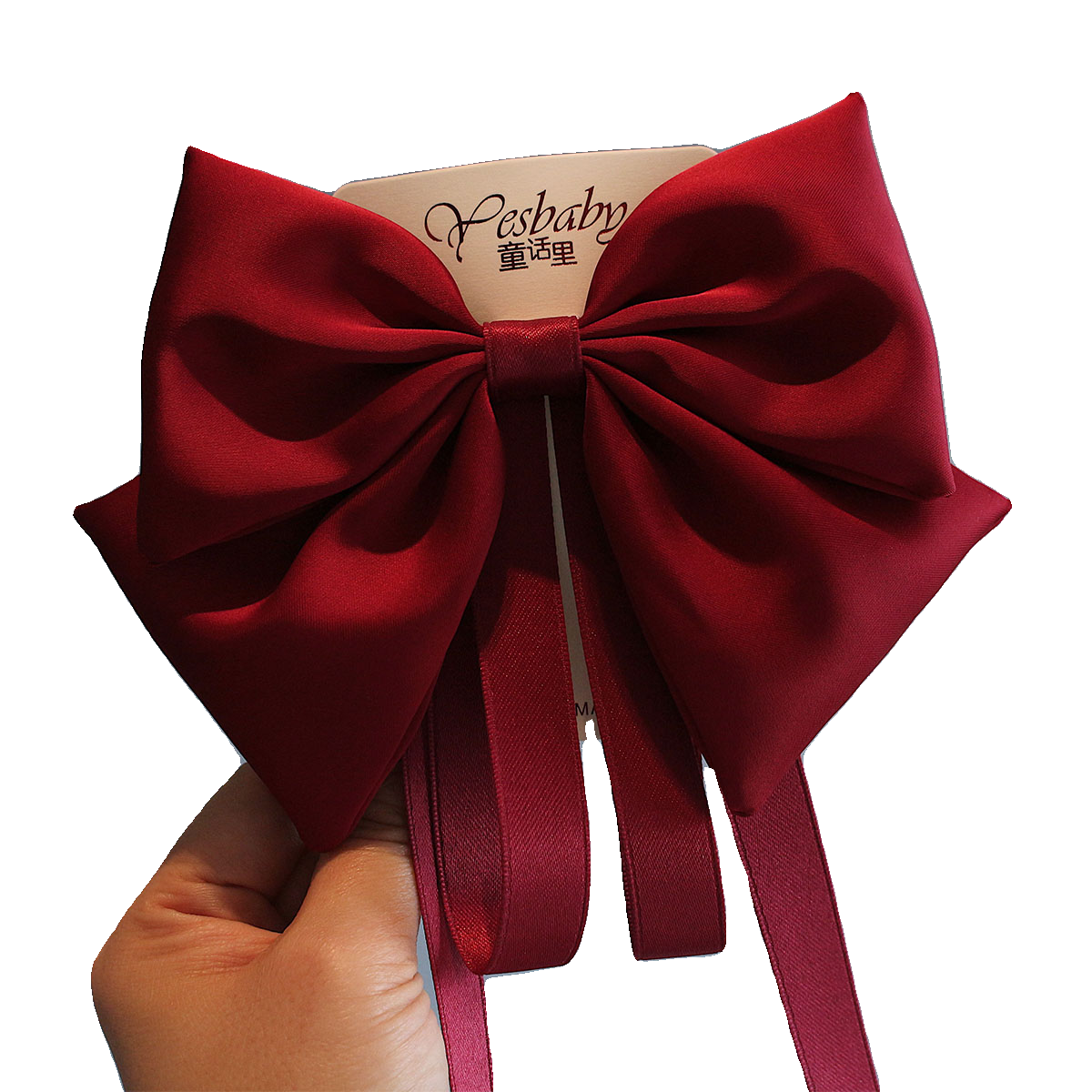 新款儿童缎面飘带大蝴蝶结发夹女童过新年酒红气质后脑勺夹子头饰