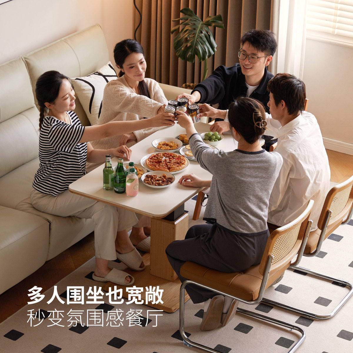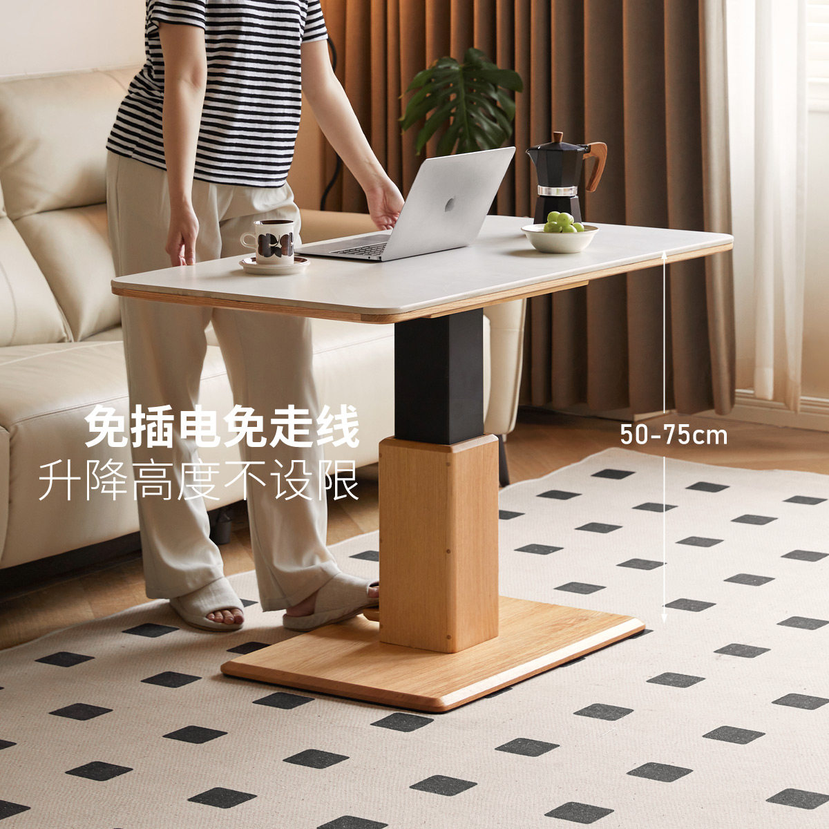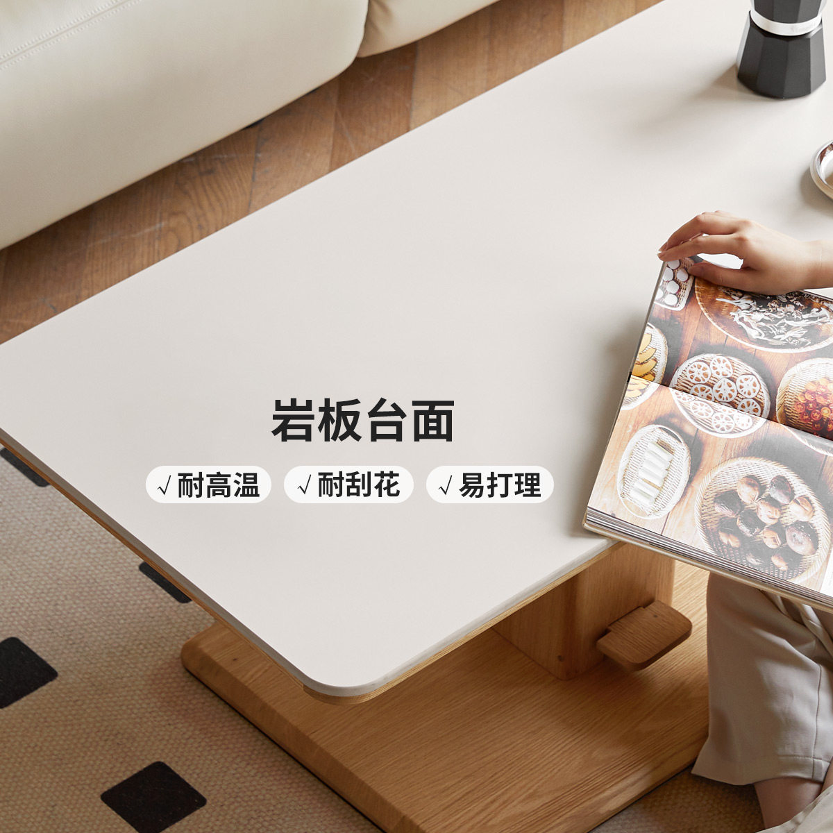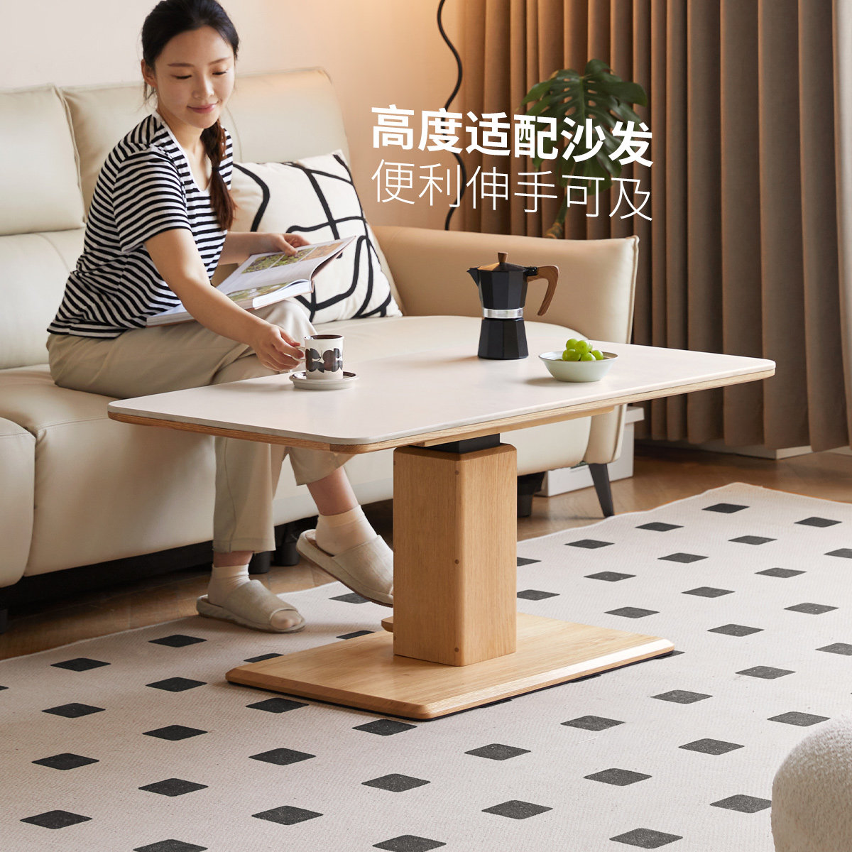 源氏木语百伦沙实木升降茶几客厅现代简约橡木岩板茶桌餐桌两用