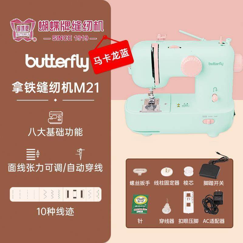 新品蝴蝶牌缝纫机m21多功能迷你小型电动衣家用台式车拿铁缝纫机
