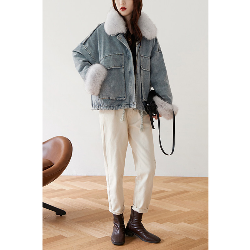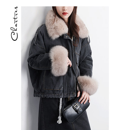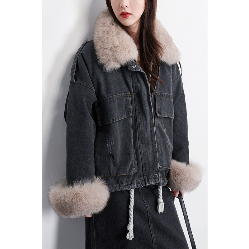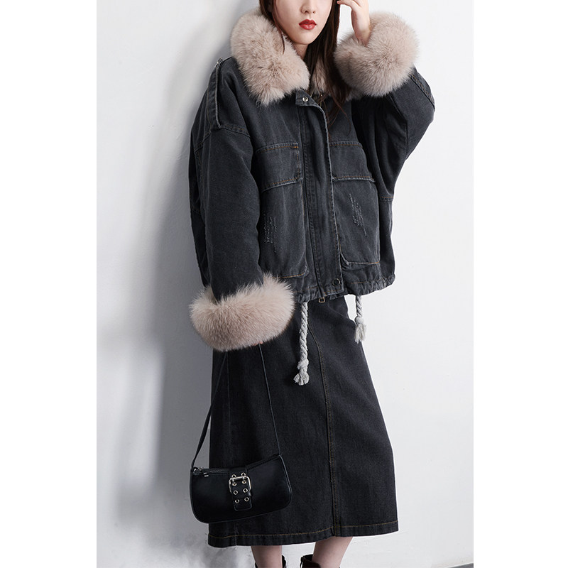 清仓 黑色牛仔羽绒服内胆可拆卸羽绒服 小个子派克羽绒外套女