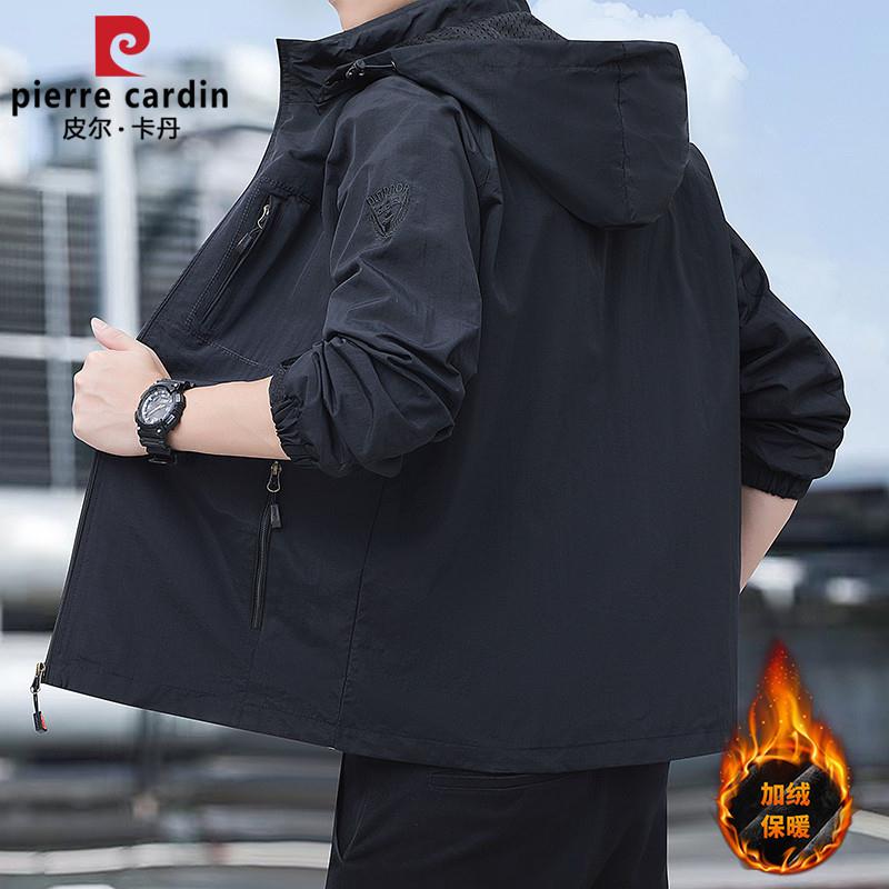 皮尔卡丹男装高档男士冲锋衣户外棉服可拆帽登山夹克外套加绒加厚
