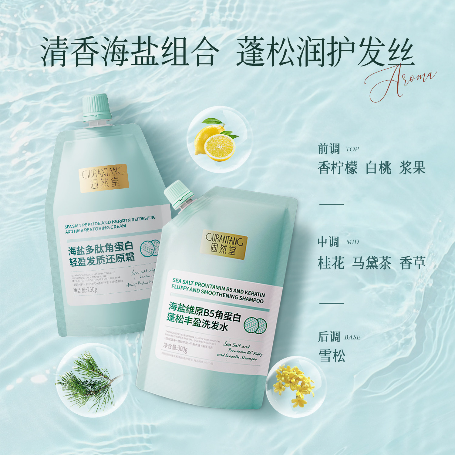 固然堂海盐角蛋白洗护套组控油蓬松防断滋养洗发水护发还原霜官方