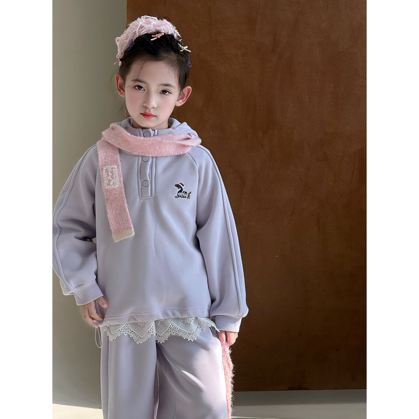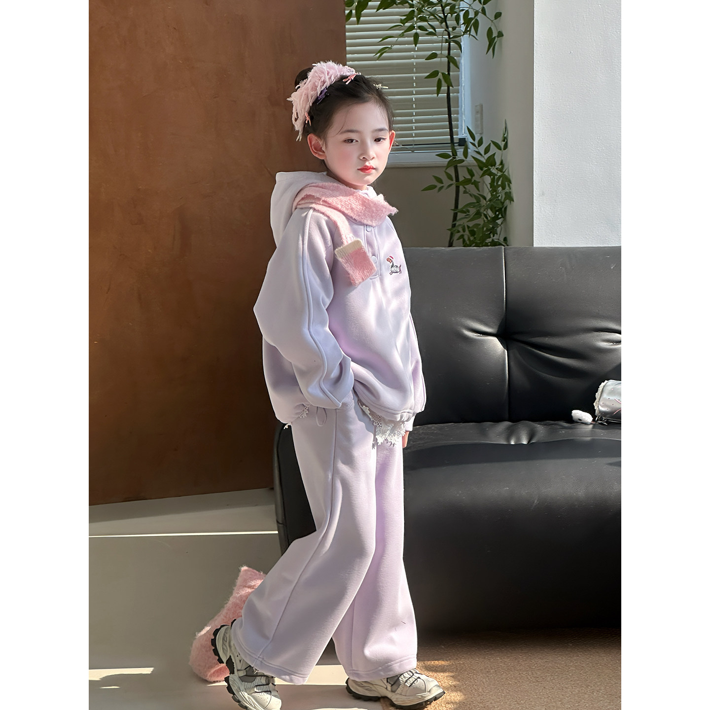 女童冬季加绒卫衣阔腿裤两件套