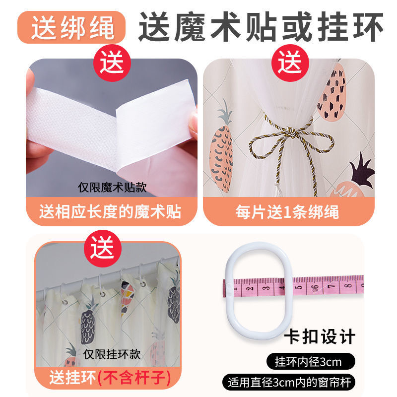 免打孔简易安装窗帘带伸缩杆全套一整套短款遮光布卧室飘窗小窗户