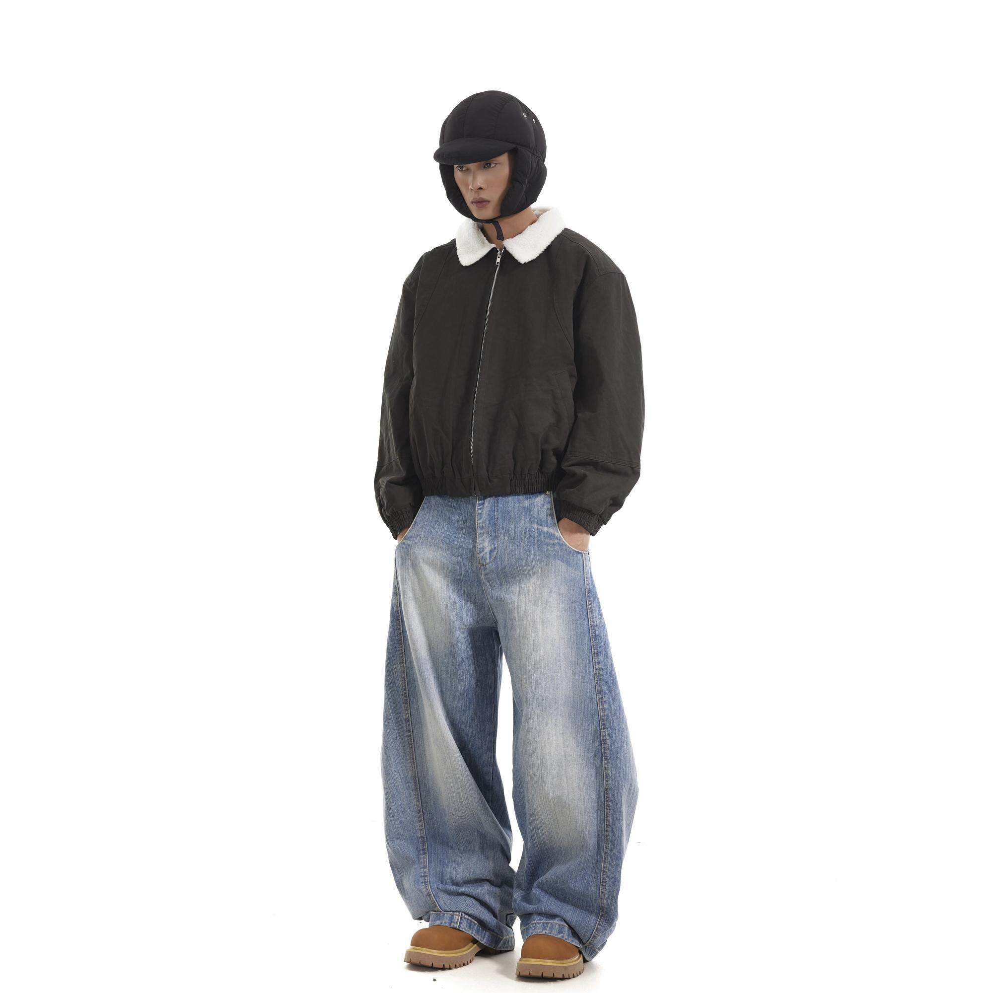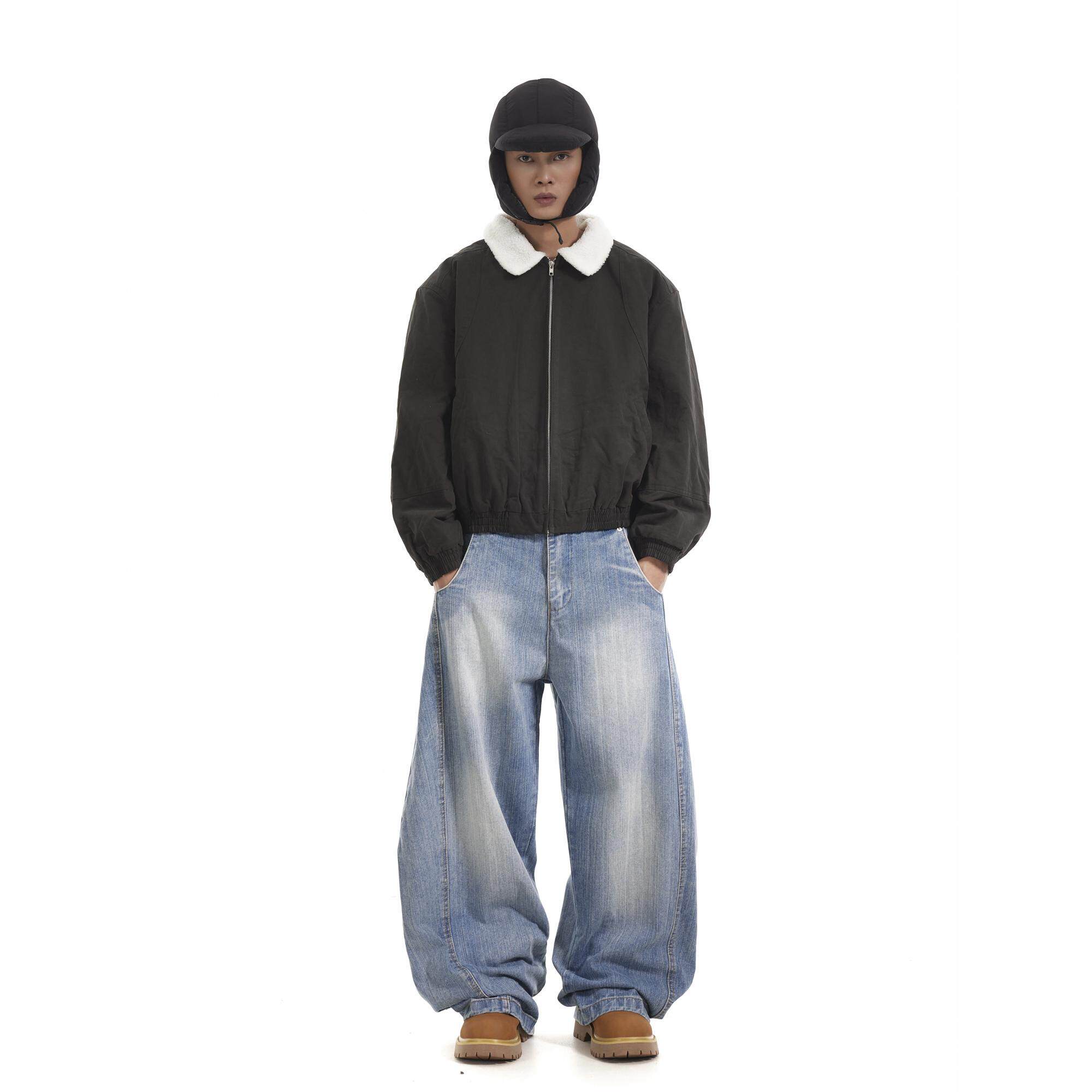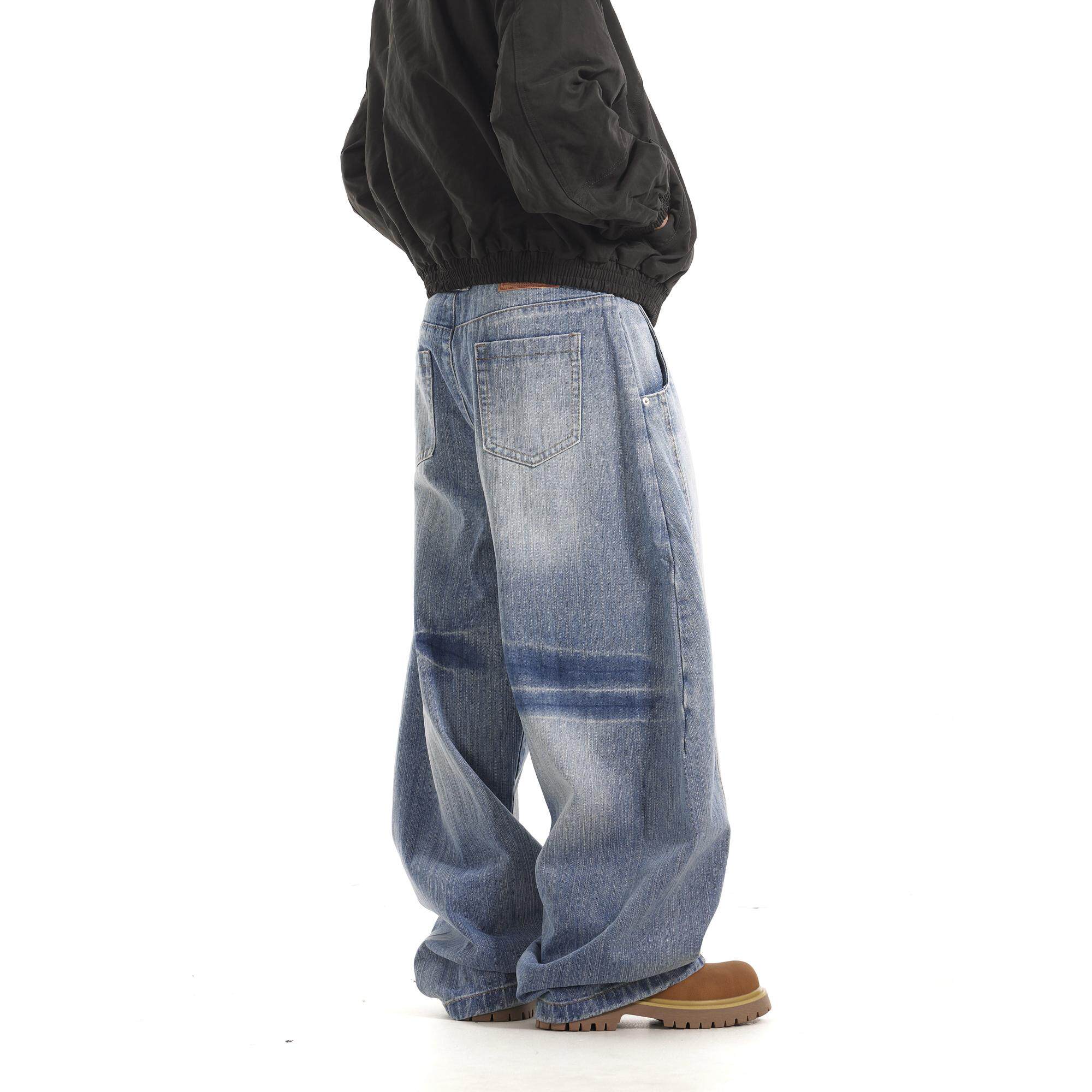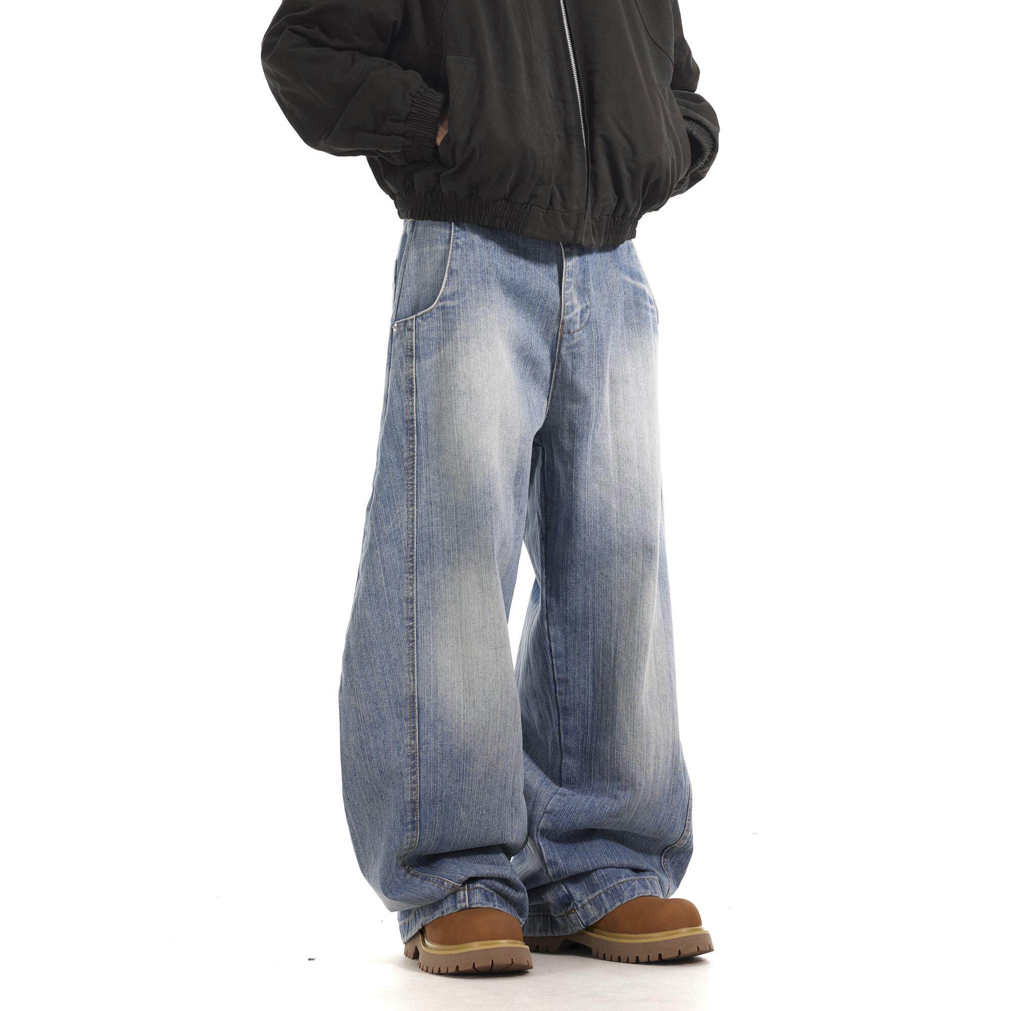 BTSG国潮小众解构设计感弯刀牛仔裤美式复古水洗宽松直筒休闲长裤