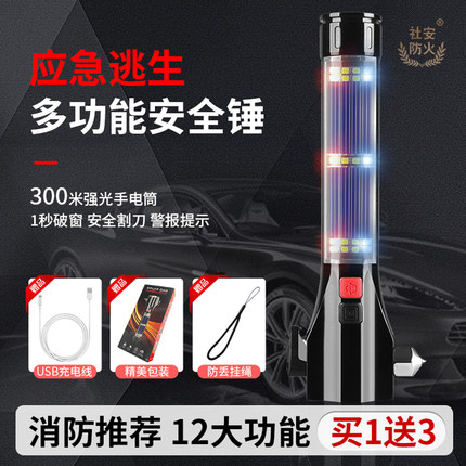 社安车载安全锤多功能手电筒应急破窗器汽车救生锤私家车用逃生器