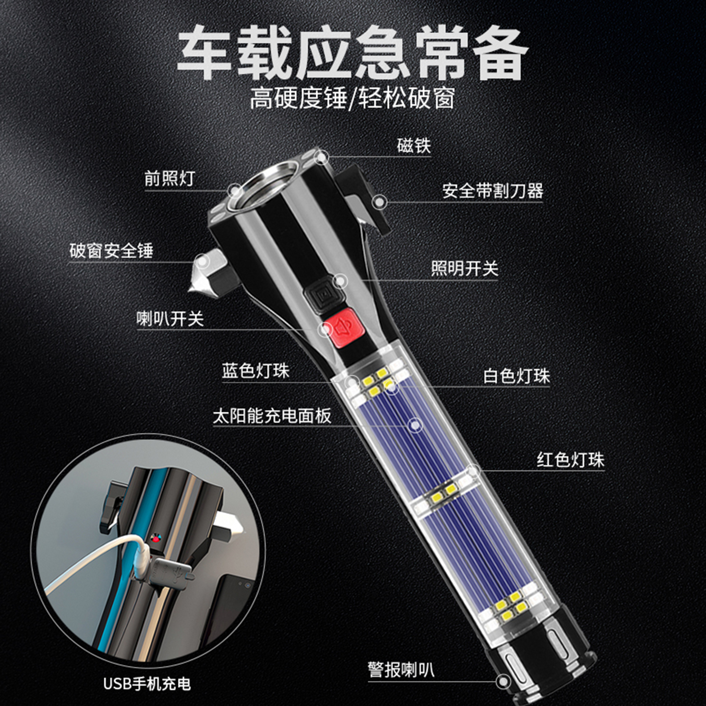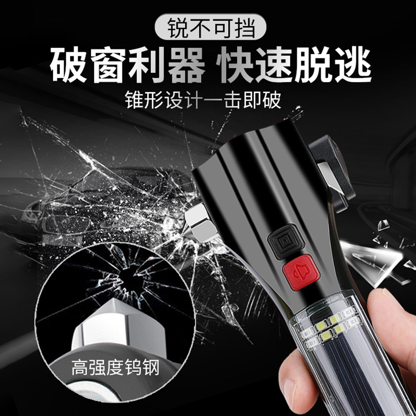 车载安全锤多功能手电筒应急
