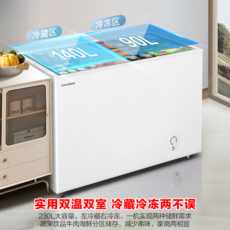 容声230升冰柜商用家用大容量冷藏保鲜冷冻双温卧式冷柜小型官方