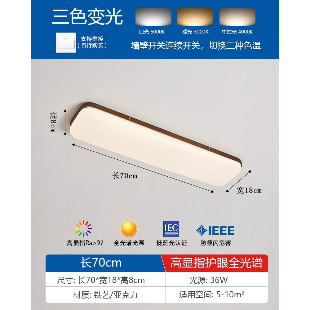 现代简约护眼过道吸顶灯长方形LED灯胡桃木新中式风玄关走廊灯具