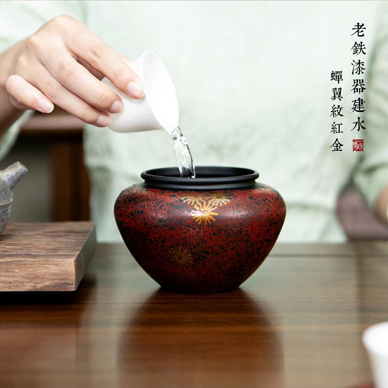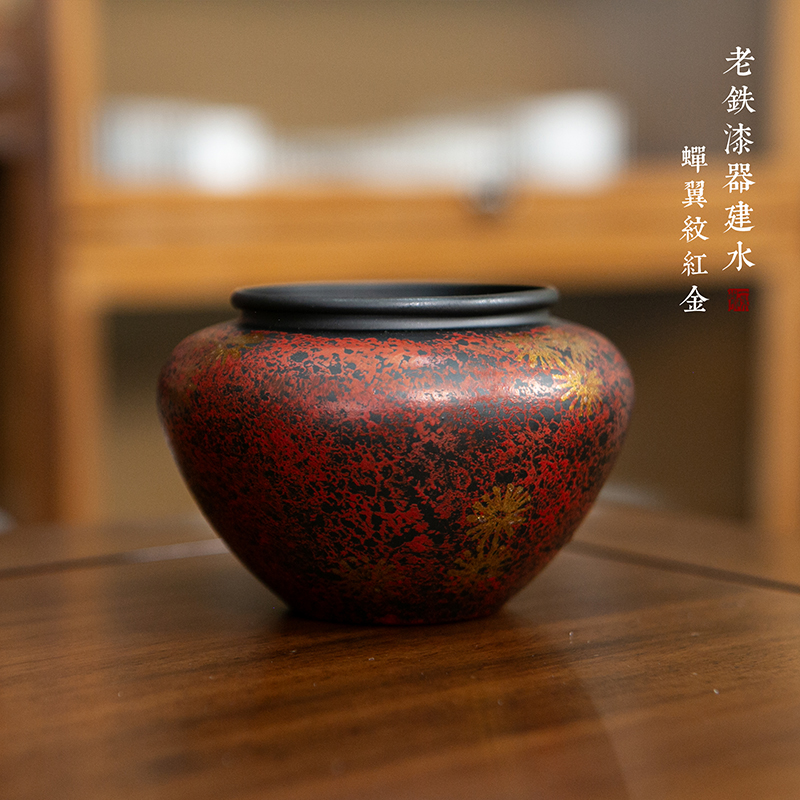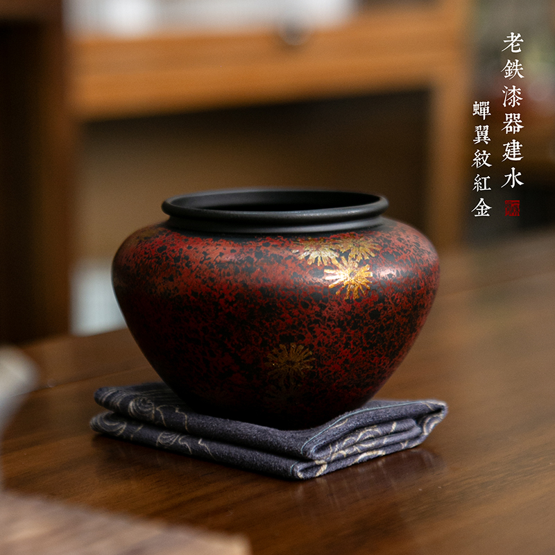 草木祠 老铁漆器茶渣缸茶洗杯洗手工功夫茶具国风烟灰缸笔洗建水