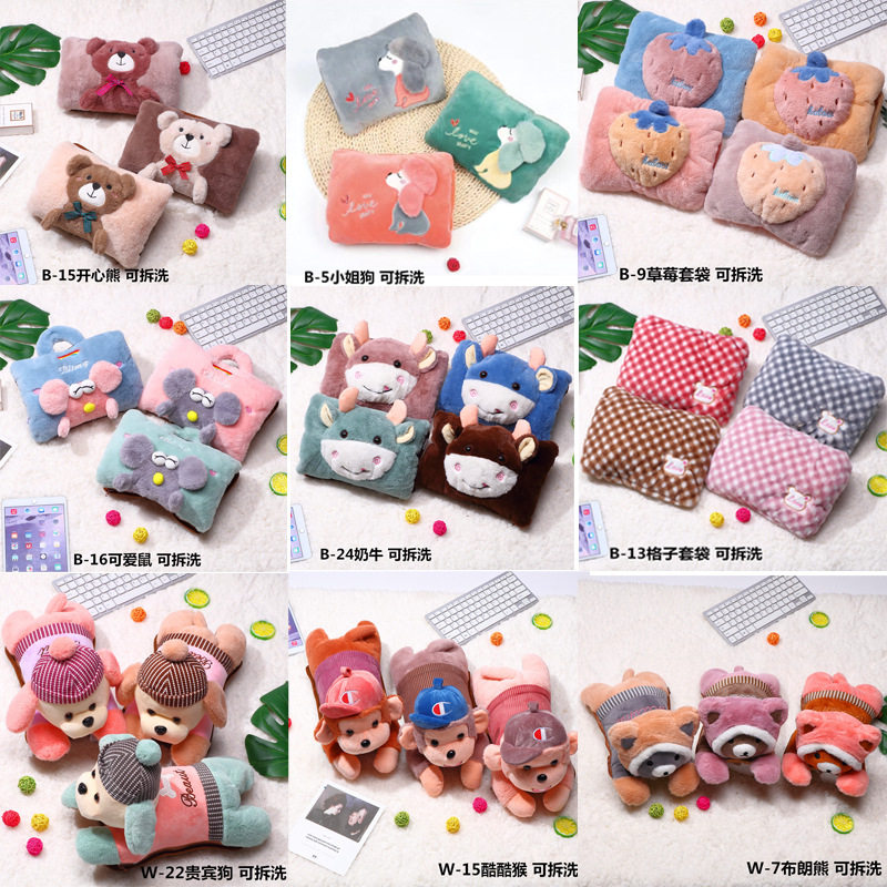 带拉链内胆可拆洗毛绒热水袋带外套卡通暖手宝绒布套暖肚子暖水袋