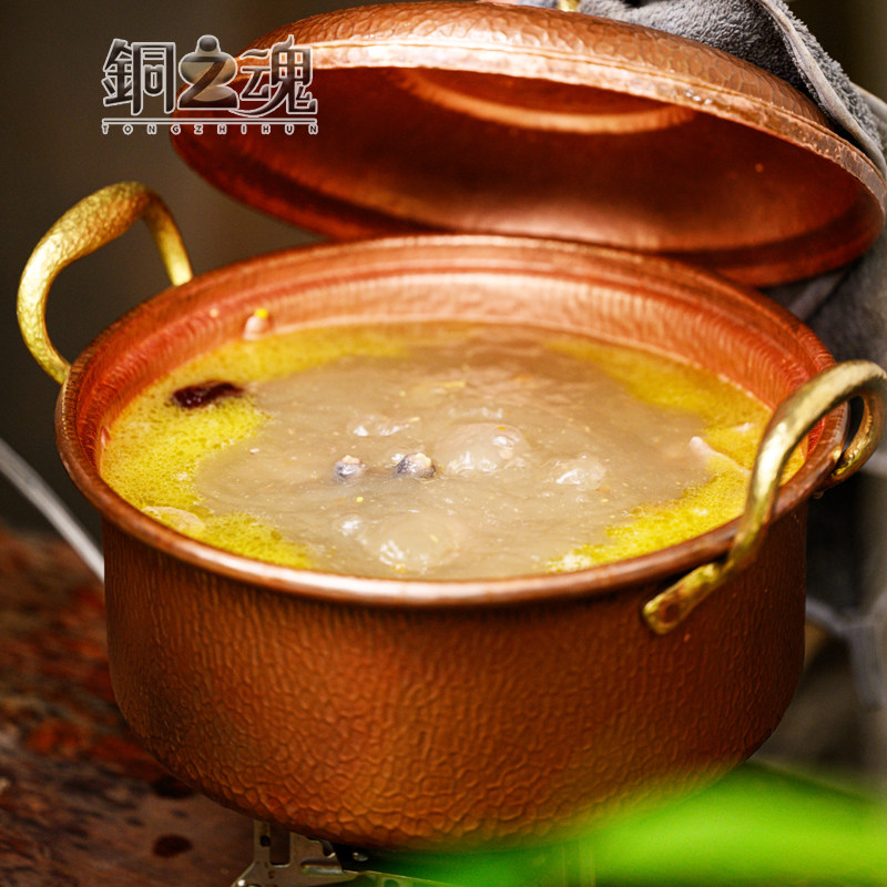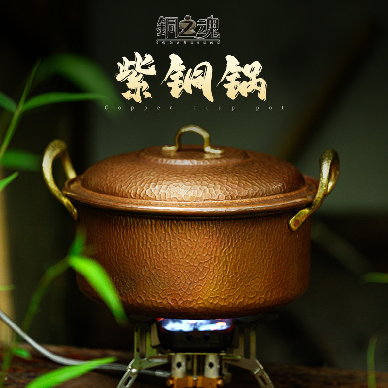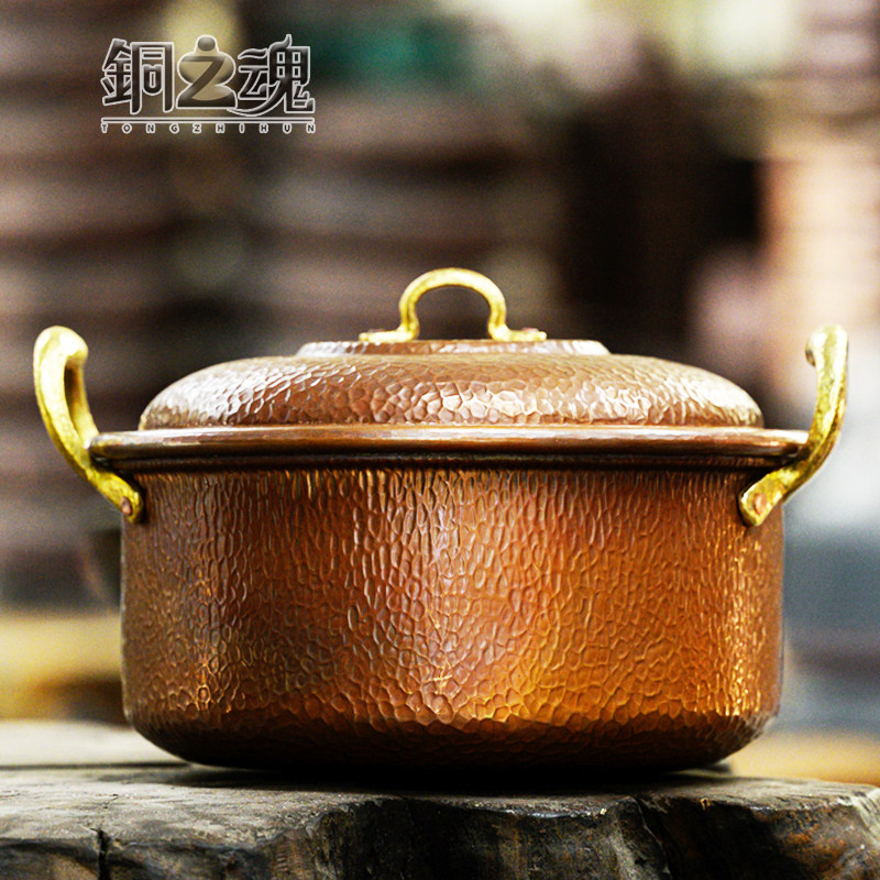 紫铜炖锅手工加厚红铜汤锅汤煲煮焖涮多用直筒型家用大容量商用