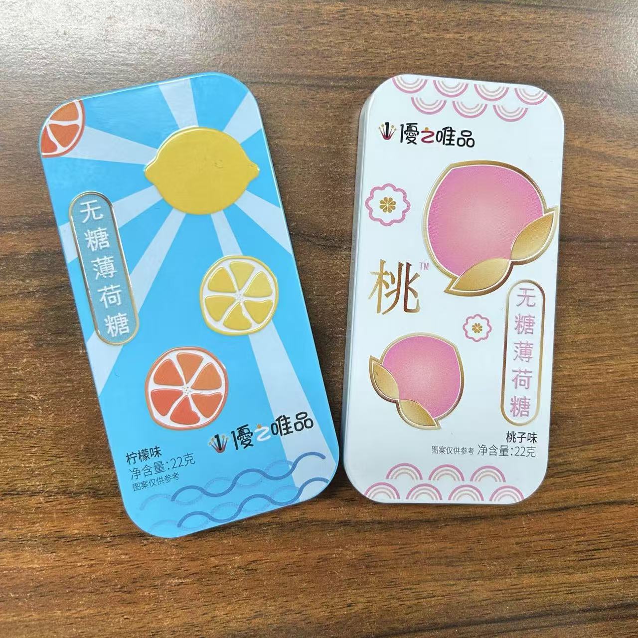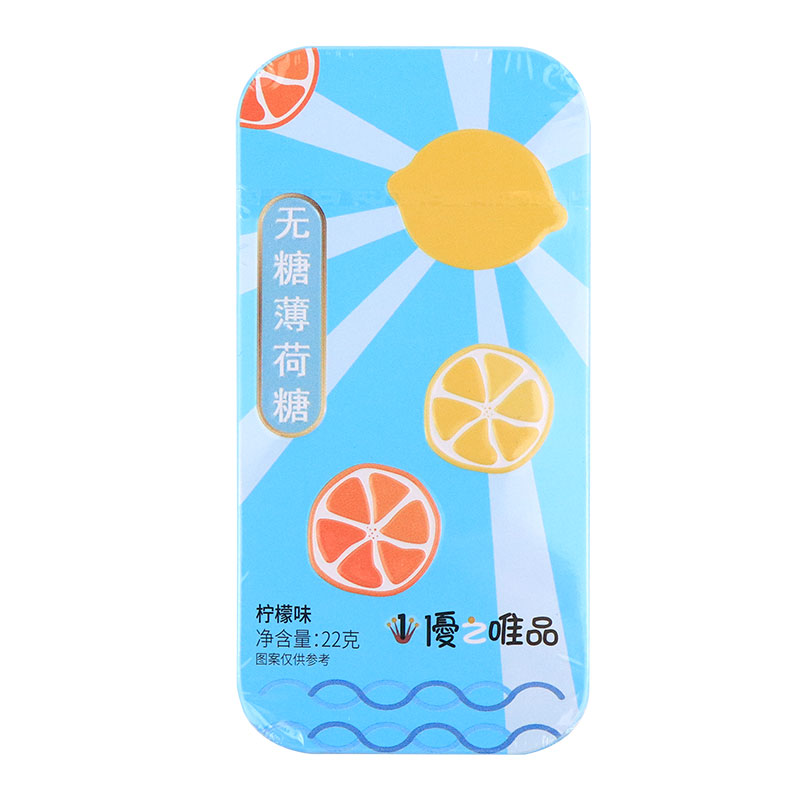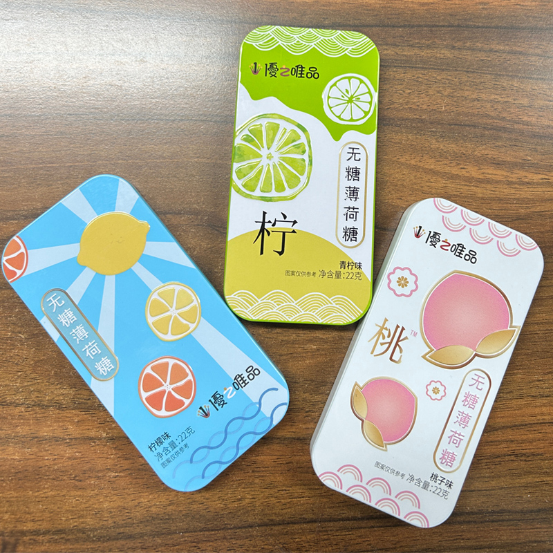 优之唯品无糖薄荷糖22g桃子青柠百香果味糖果网红休闲零食铁盒装
