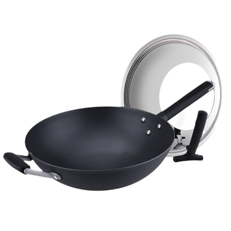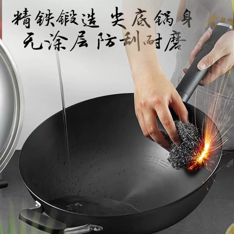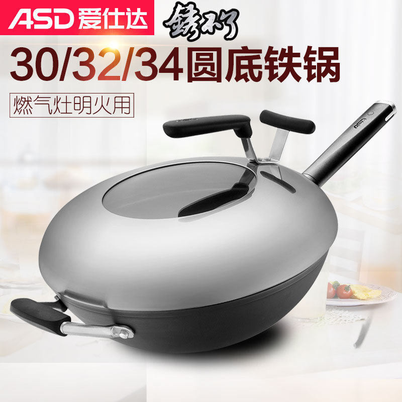 爱仕达炒锅旋风圆底少油烟煎锅CF32M2Q无涂层不生锈燃气炉灶铁锅