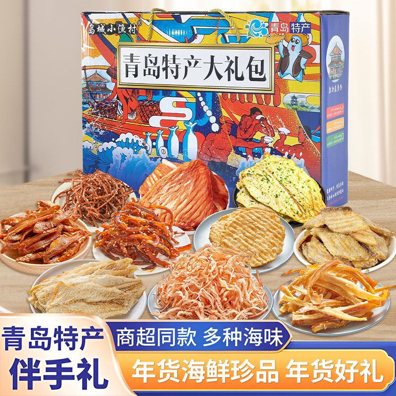 山东海鲜特产青岛大礼包即食零食鱿鱼丝鳕鱼片海鲜礼盒送礼佳品