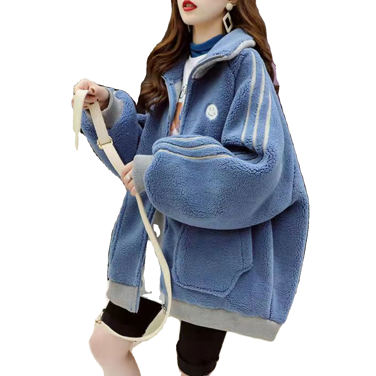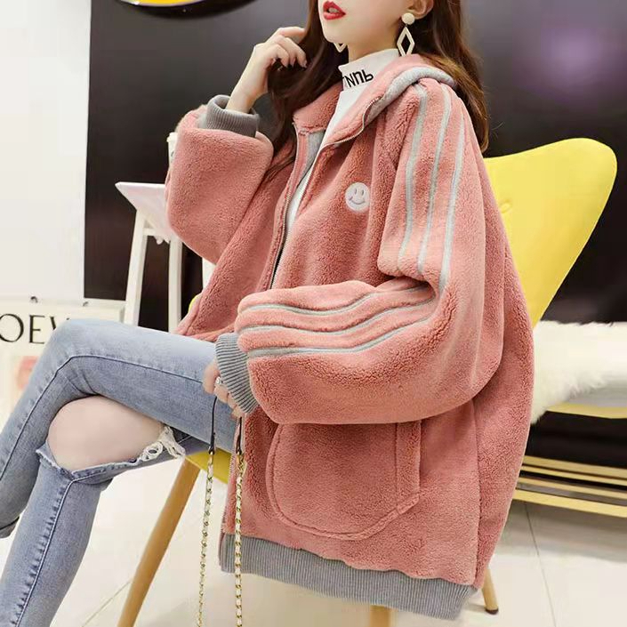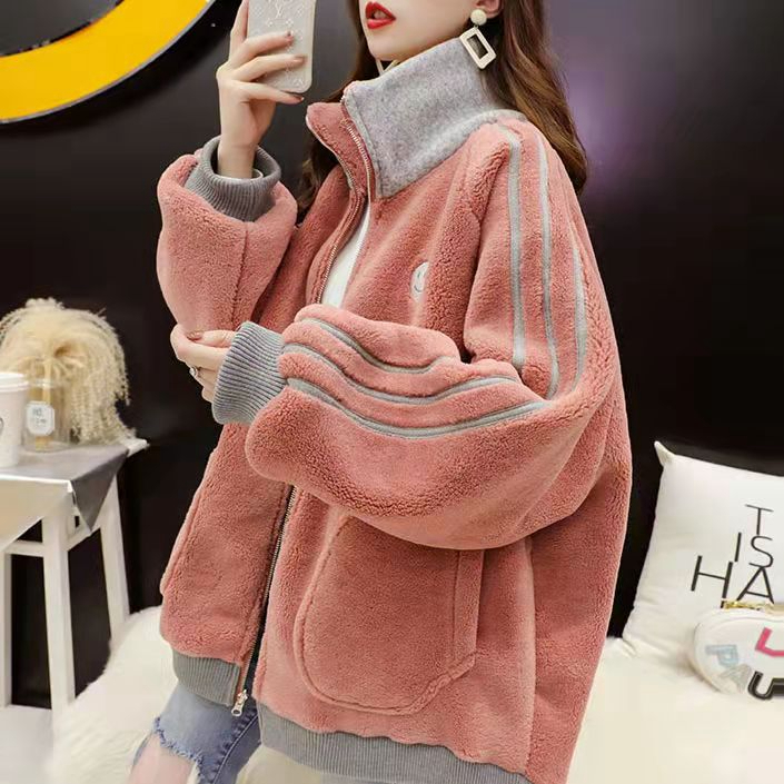 羊羔毛炸街外套女潮ins秋冬季韩版宽松大码加厚百搭盐系开衫