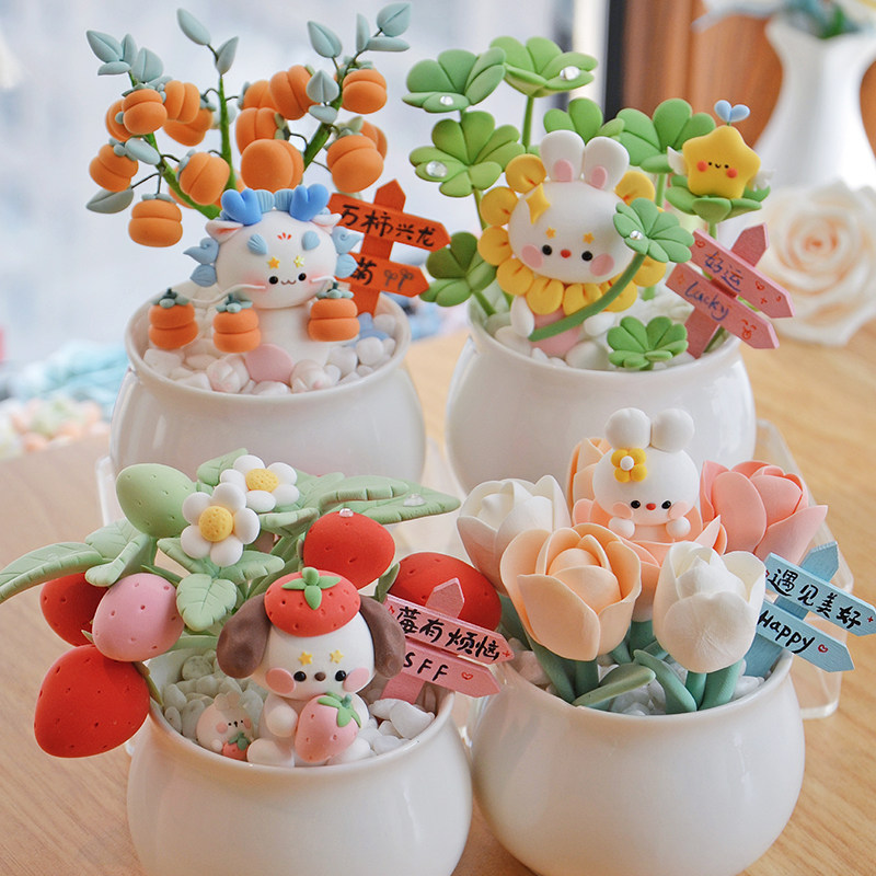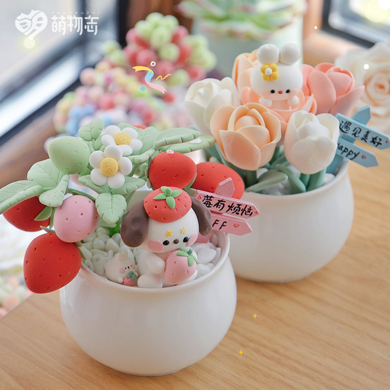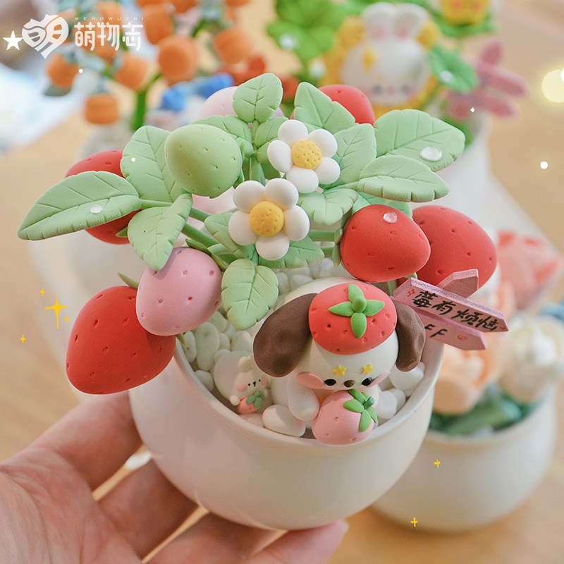 草莓郁金香diy粘土材料包仿真植物盆栽儿童亲子自制创意手工礼物
