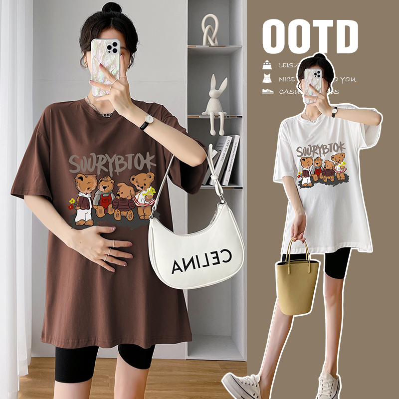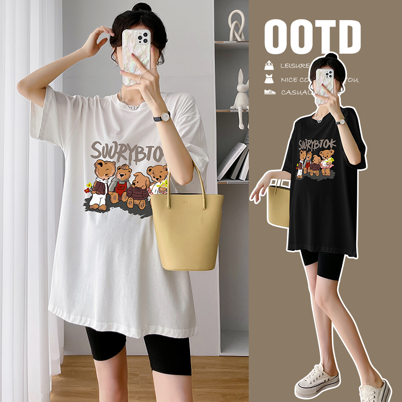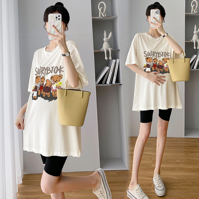 大码孕妇短袖T恤女夏季韩版休闲宽松中长款纯棉上衣两件套装200斤