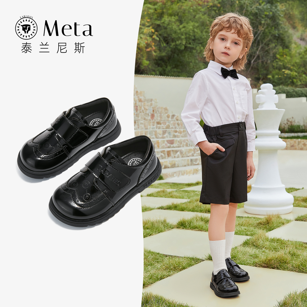泰兰尼斯meta春秋新款男童皮鞋儿童皮鞋英伦风单鞋女童演出黑皮鞋
