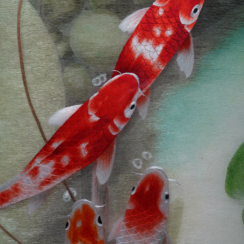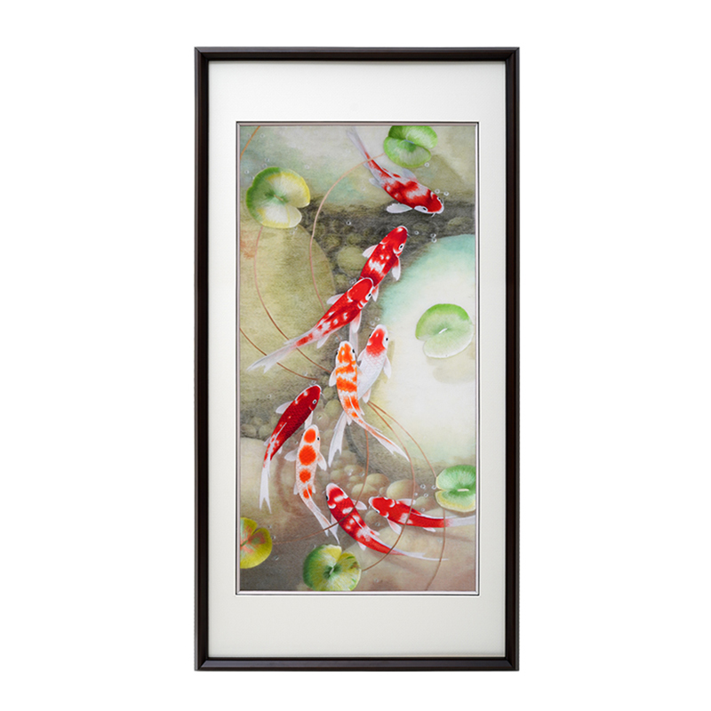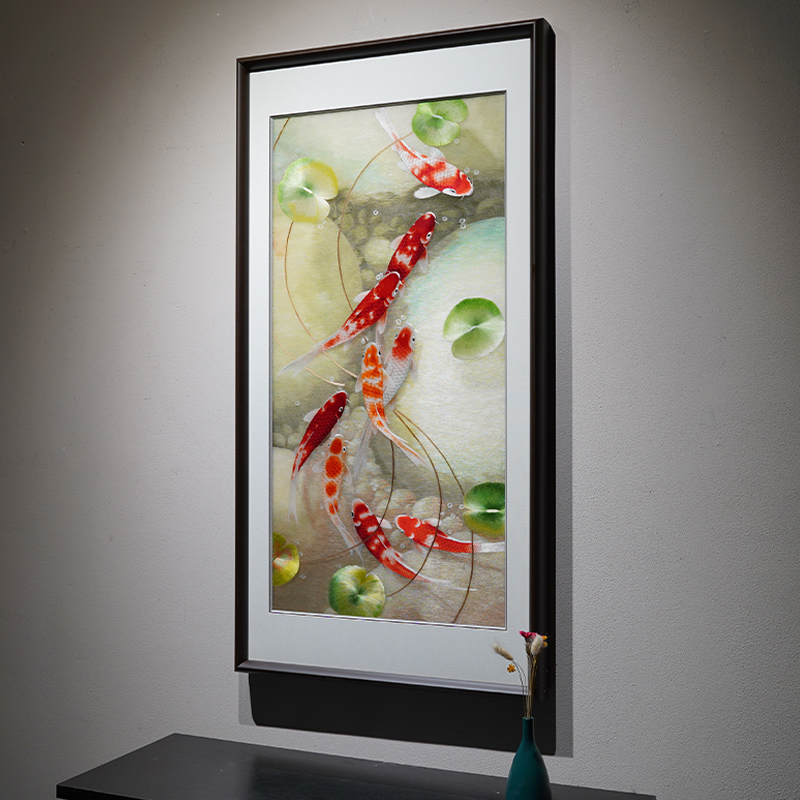 苏绣新中式客厅玄关成品挂画苏州纯手工刺绣锦鲤中国风轻奢装饰画