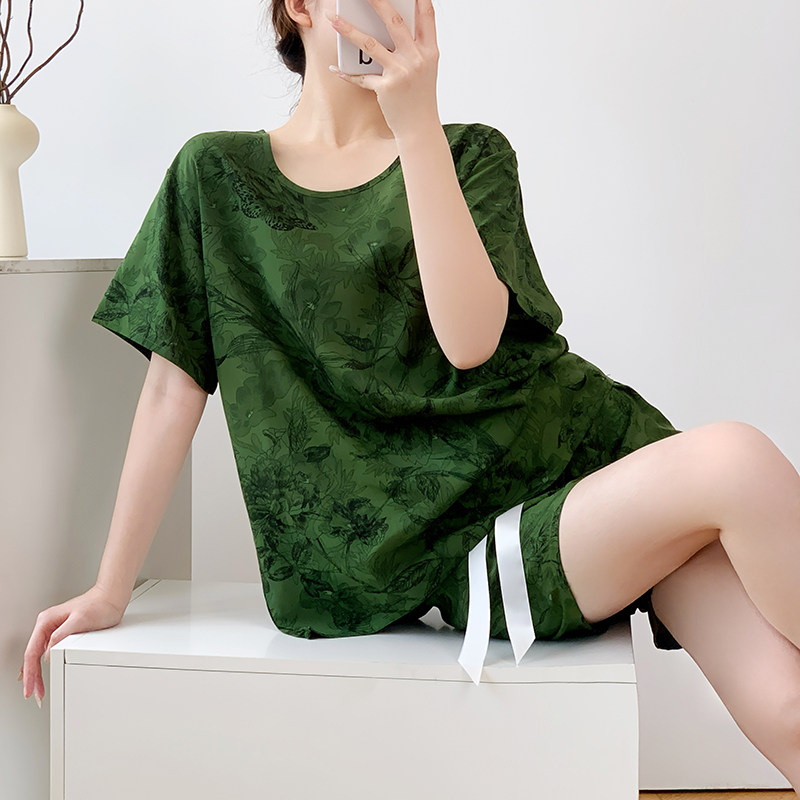 短袖棉绸睡衣女春夏新款人造棉家居服日系花卉大码绵绸套装可外穿