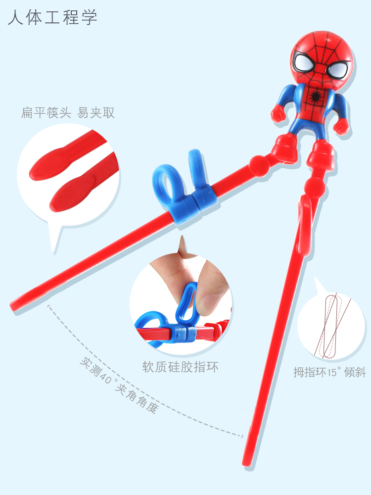 迪士尼儿童筷子训练筷一段练习筷男孩家用宝宝餐具蜘蛛侠学习筷