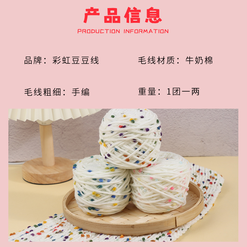 彩色彩虹糖豆豆线围巾毛线手工diy手混线手织围脖专用线针织冰条
