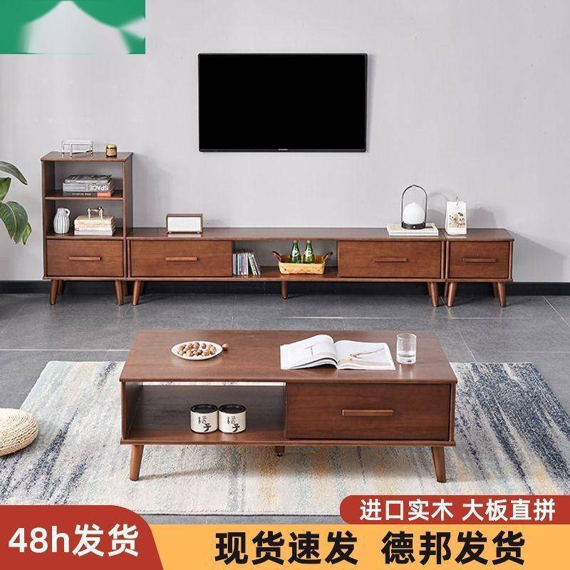 胡桃木色实木电视柜现代简约客厅新款茶几组合小户型地电视茶几柜