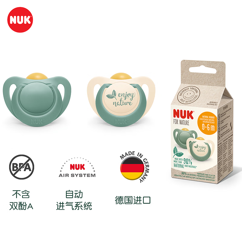 NUK德国进口婴儿安抚奶嘴宝宝母乳实感乳胶奶嘴防龅牙防胀气耐咬