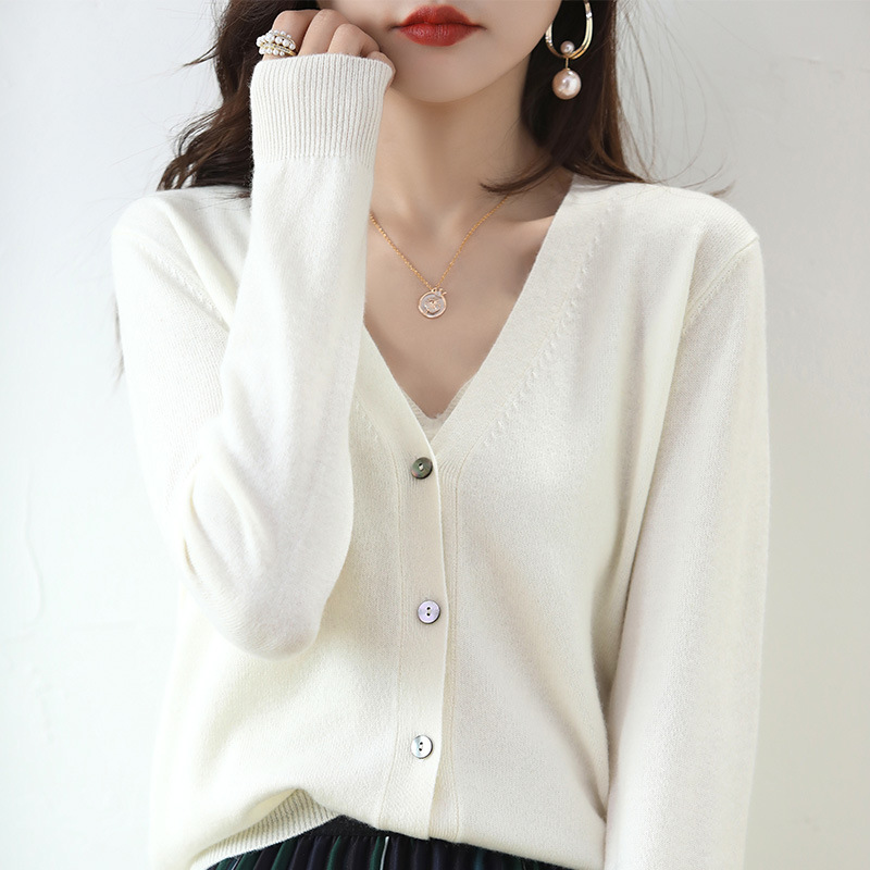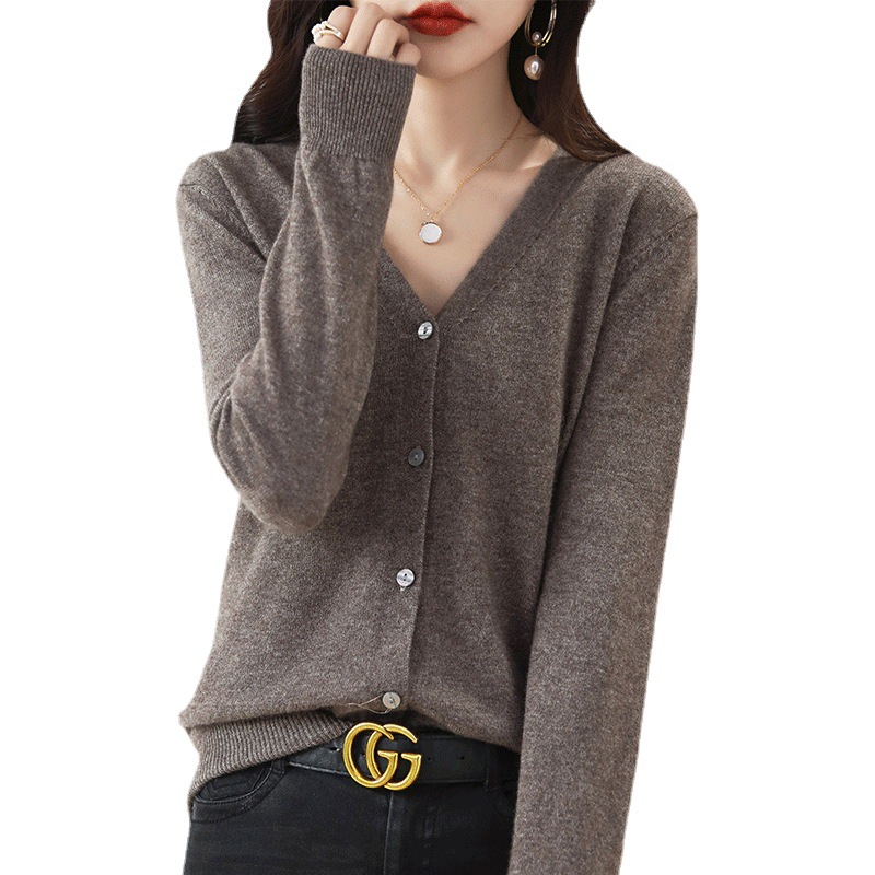秋冬针织开衫女V领显瘦毛衣