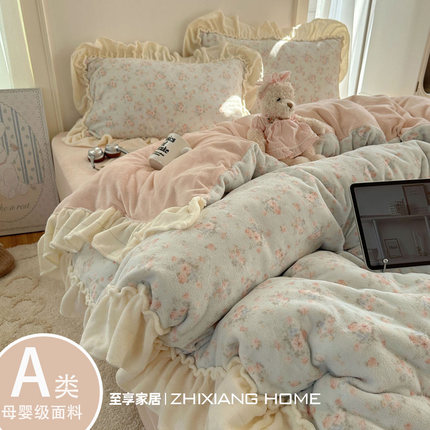法式奶油风四件套牛奶绒加厚双面绒冬季珊瑚绒床单被套床品三件套
