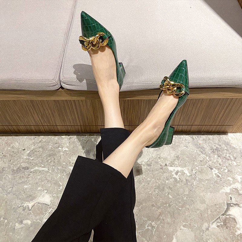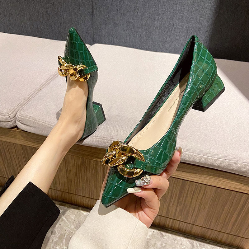 新款3cm粗跟尖头浅口单鞋女低跟通勤上班久站不累工作鞋职业中跟
