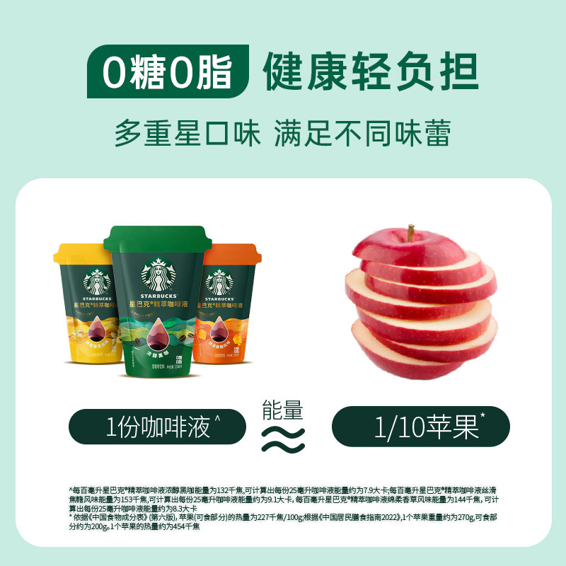 【春节不打烊】星巴克浓缩咖啡液0糖0脂精萃速溶黑咖啡美式拿铁
