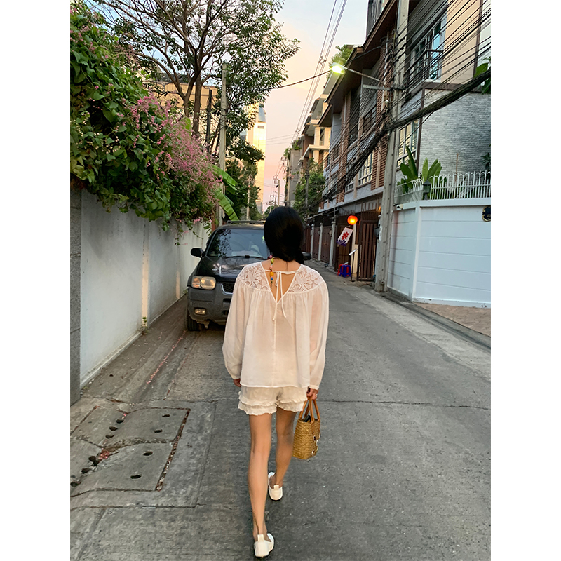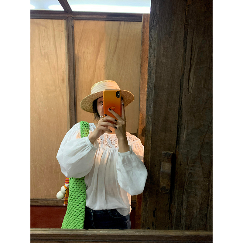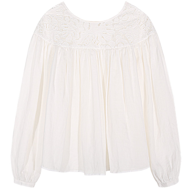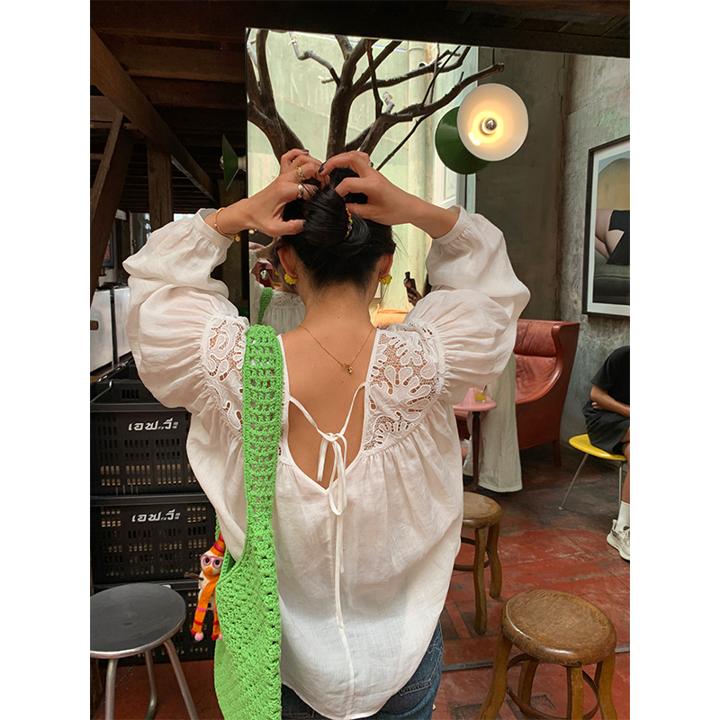 落落狷介法式上衣女2025年新款宽松套头衬衫小个子苎麻白色设计感