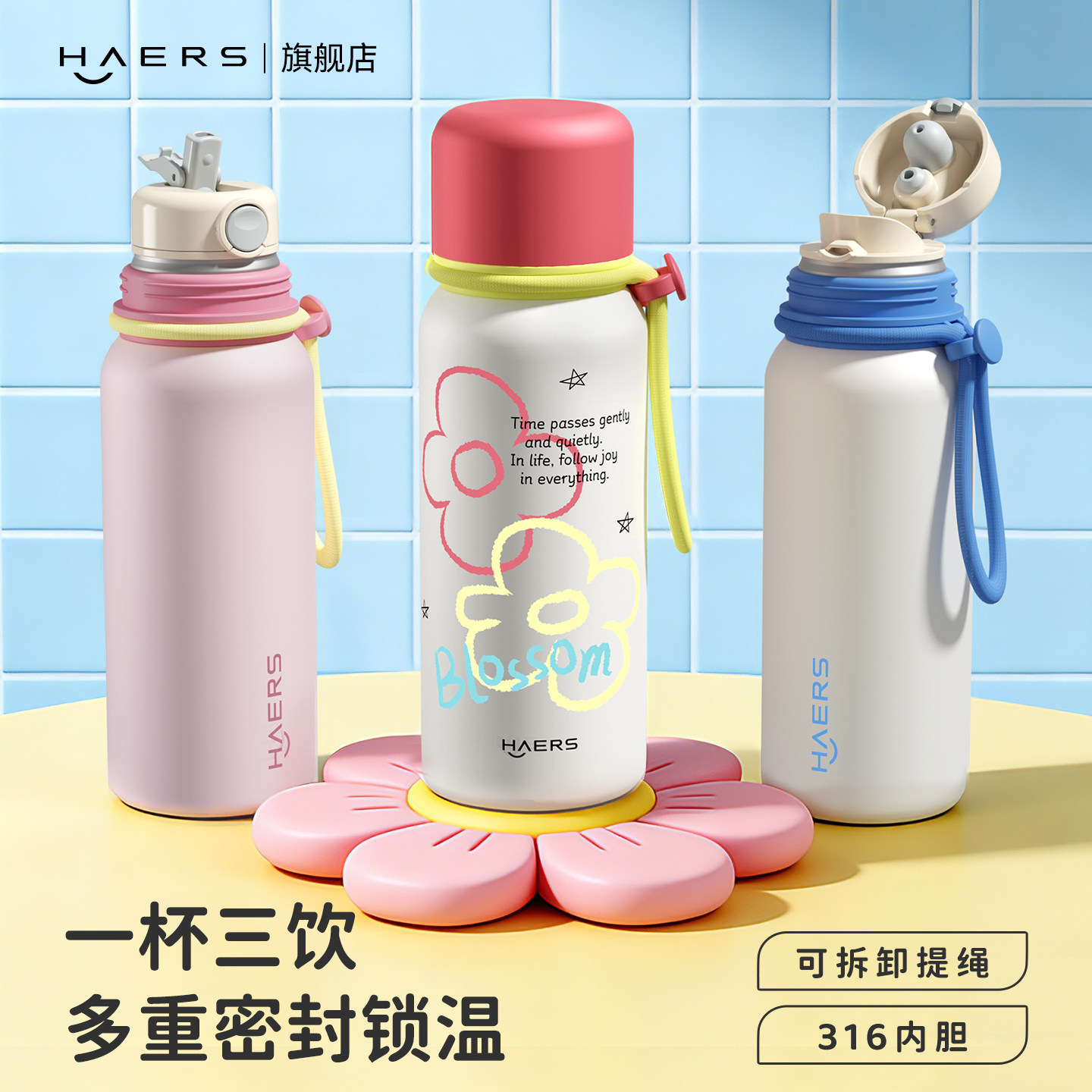 哈尔斯保温杯女生高颜值新款大容量杯子学生上学专用儿童吸管水杯