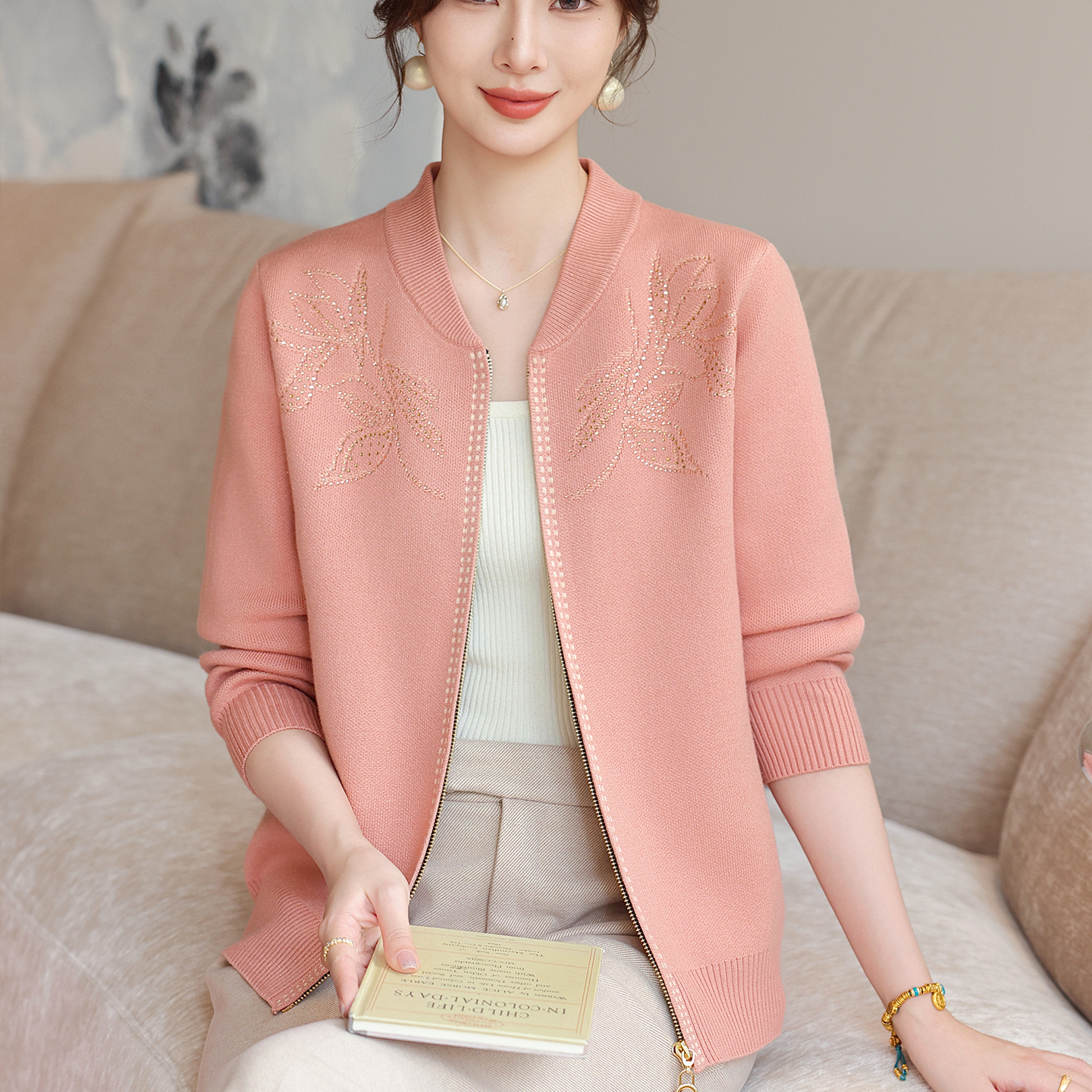中老年春秋外套女妈妈装毛衣开衫