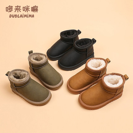 儿童雪地靴防水加厚保暖棉鞋2025冬季新款女童鞋皮面靴子男童棉靴