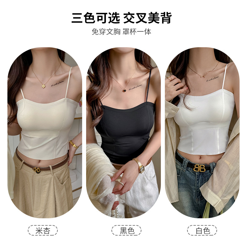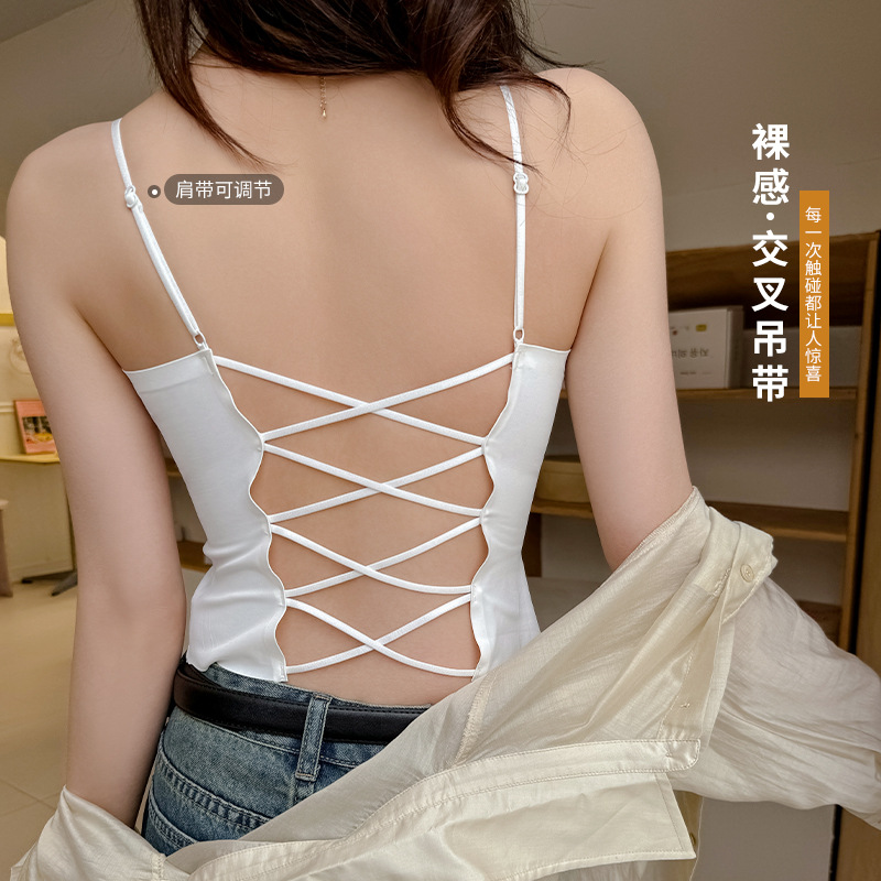 冰丝带胸垫一体固定杯镂空交叉美背小吊带女打底内搭性感外穿裹胸