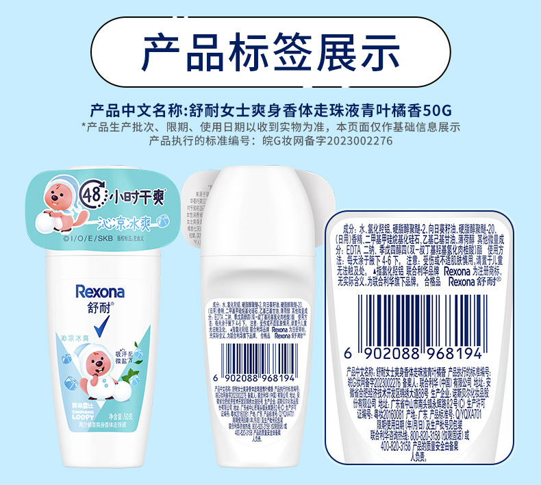 【LOOPY联名】舒耐女士干爽香体止汗走珠液青叶橘香50g止汗露