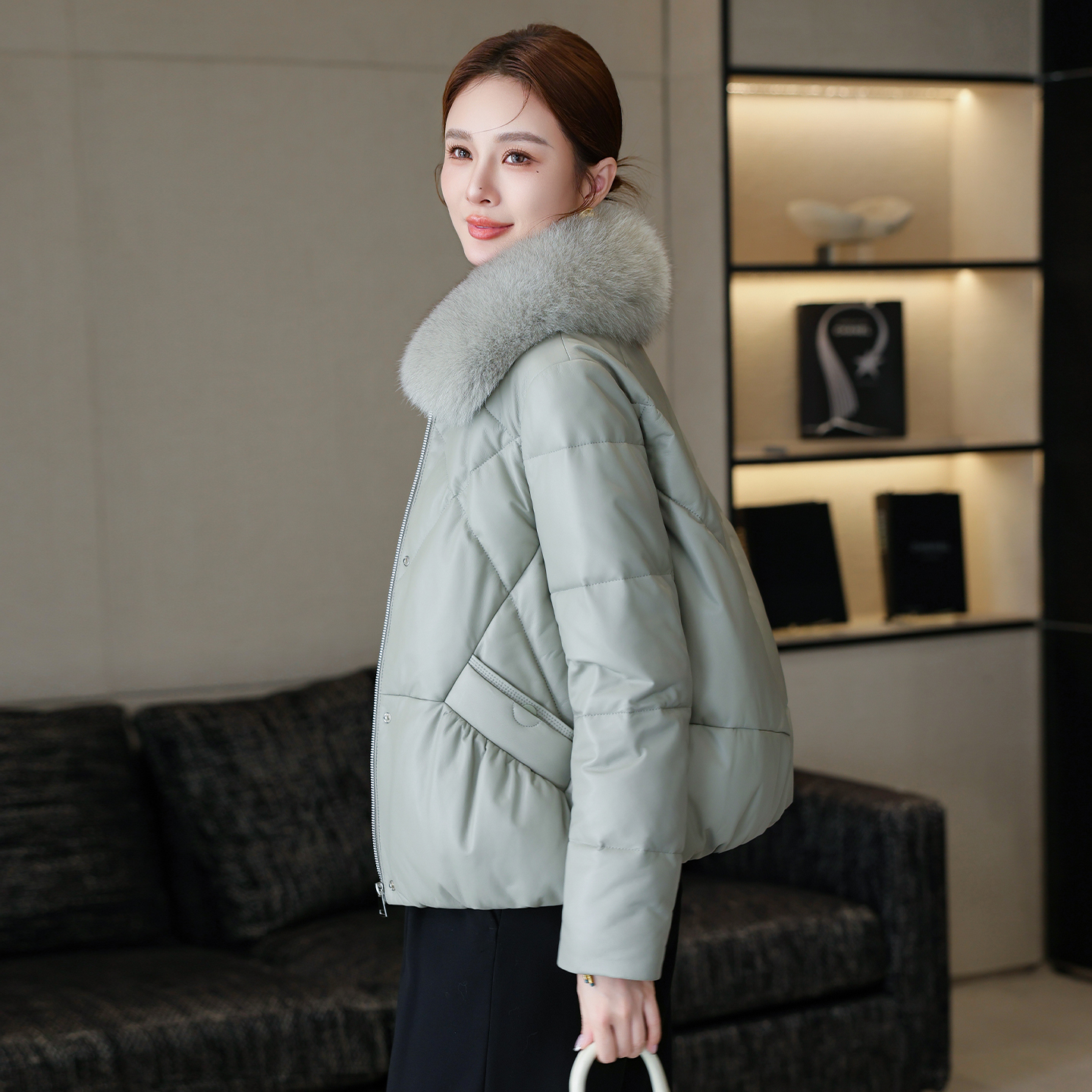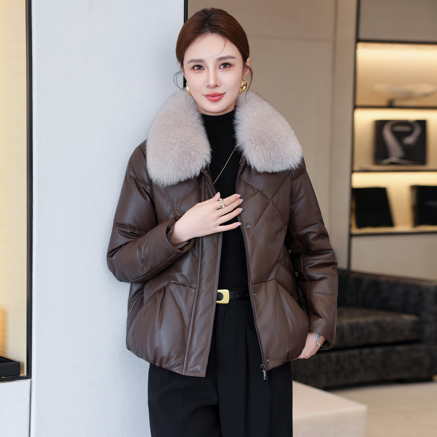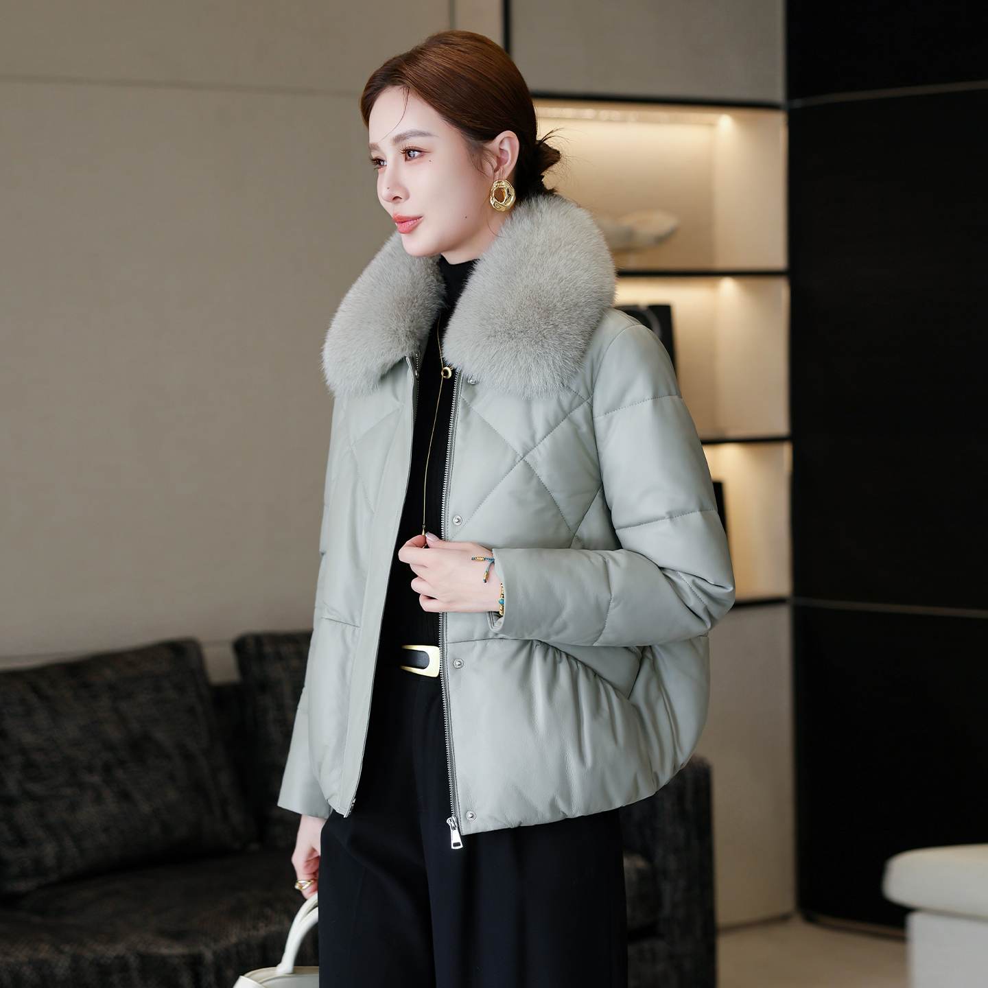 狐狸毛领真皮羽绒服外套女2025冬季新款宽松加厚绵羊皮皮衣短款潮