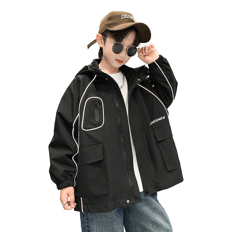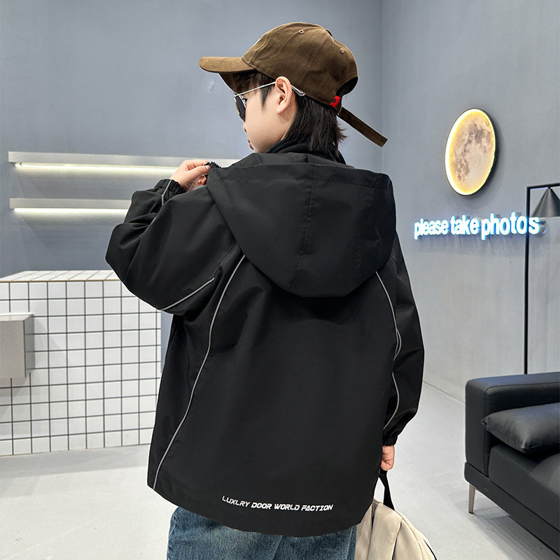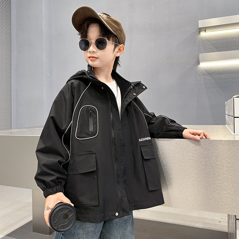 男童大口袋三合一冲锋衣2025秋季新款中大童纯色冬装字母连帽外套