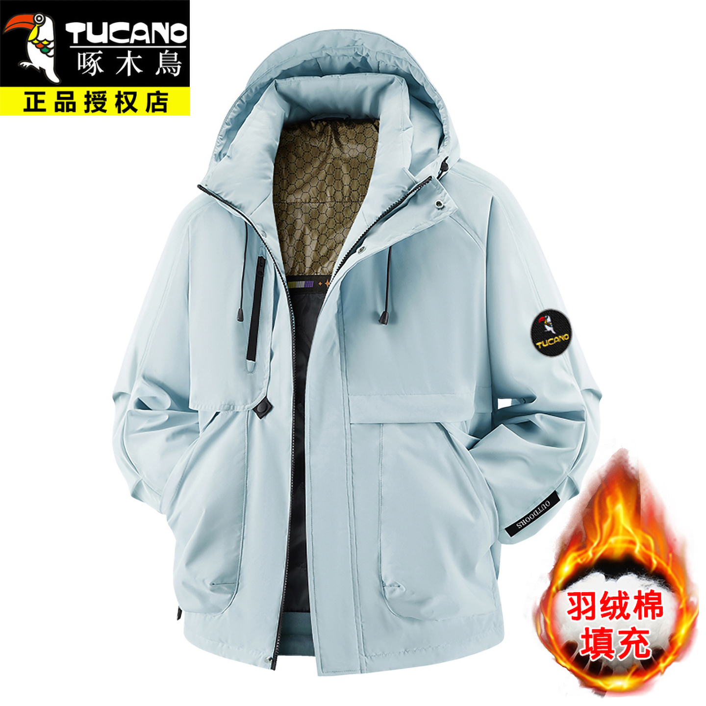 啄木鸟冲锋衣连帽加厚棉衣户外冬季保暖外套棉服东北棉袄情侣款潮