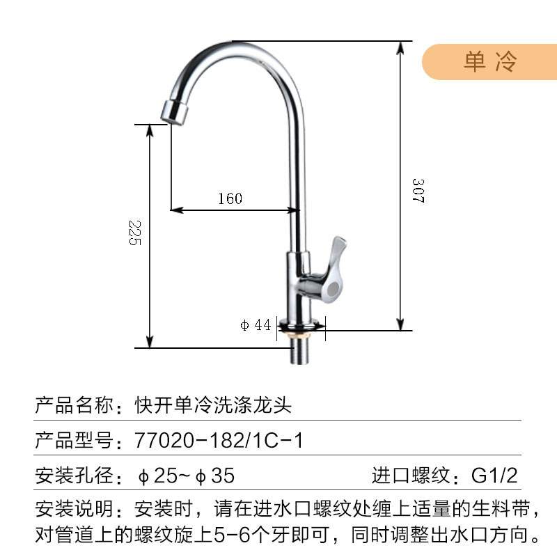 【焕新补贴15%】九牧卫浴水龙头单冷款厨房快开精铜洗菜盆