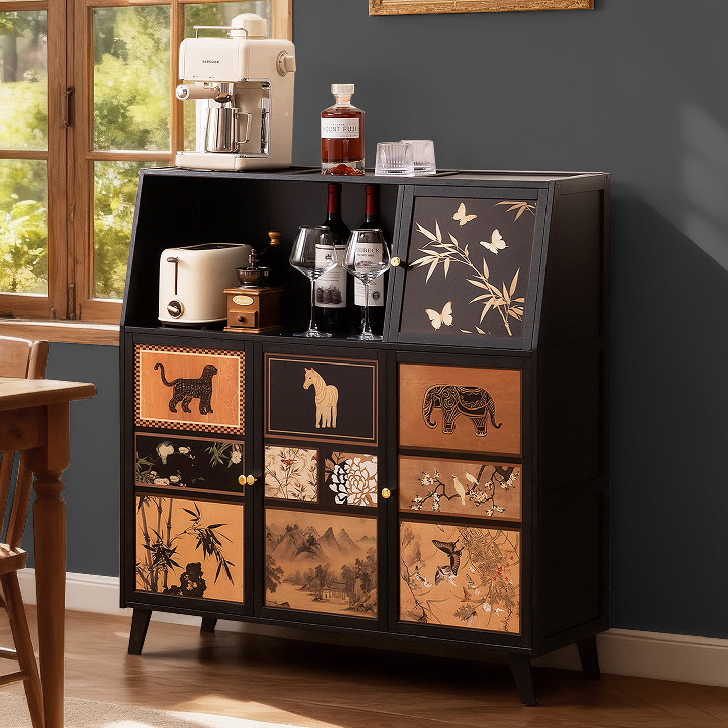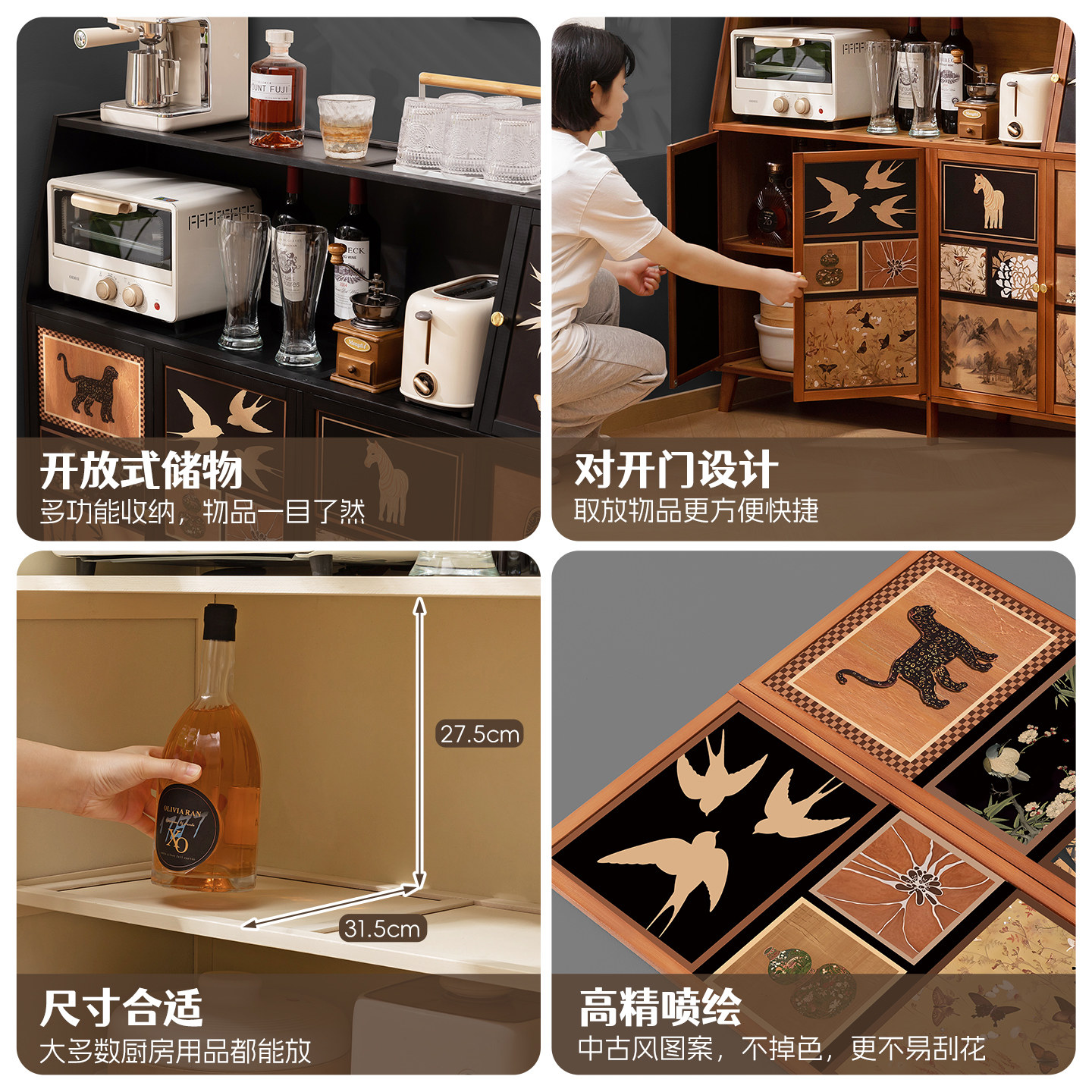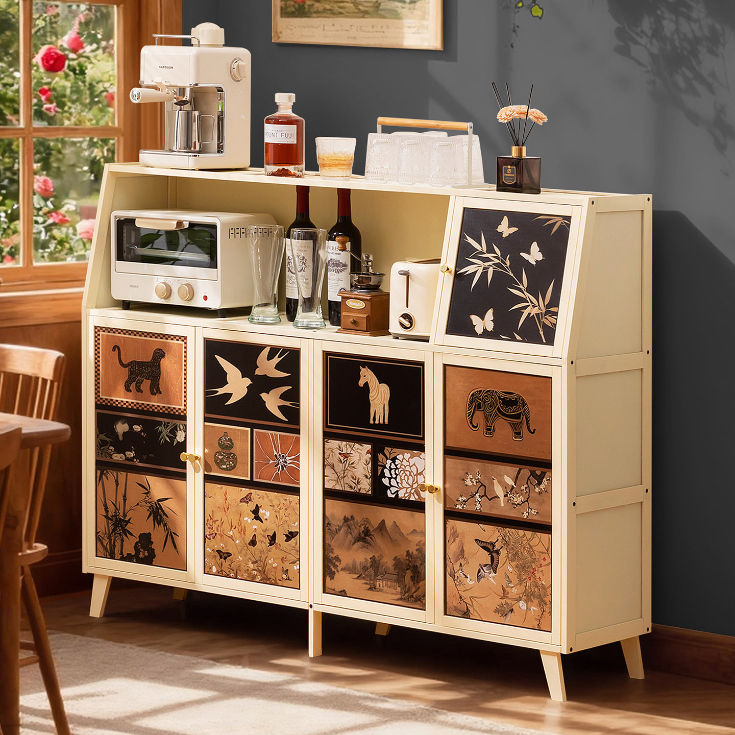 厨房餐边柜子储物柜家用靠墙客厅落地橱柜中古风置物柜咖啡茶水柜