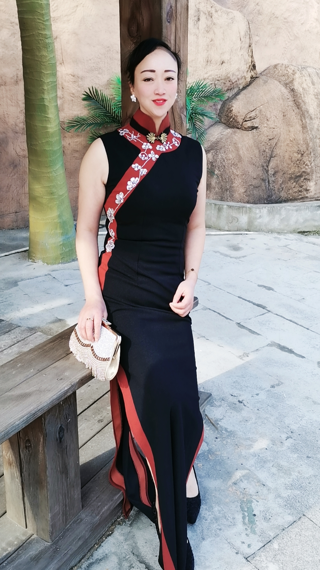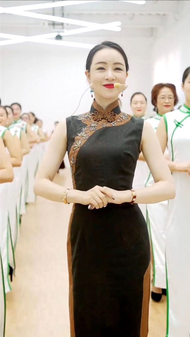 娴馨旗袍毛宇琳同款弹力棉手工钉珠走秀旗袍支持多色定制